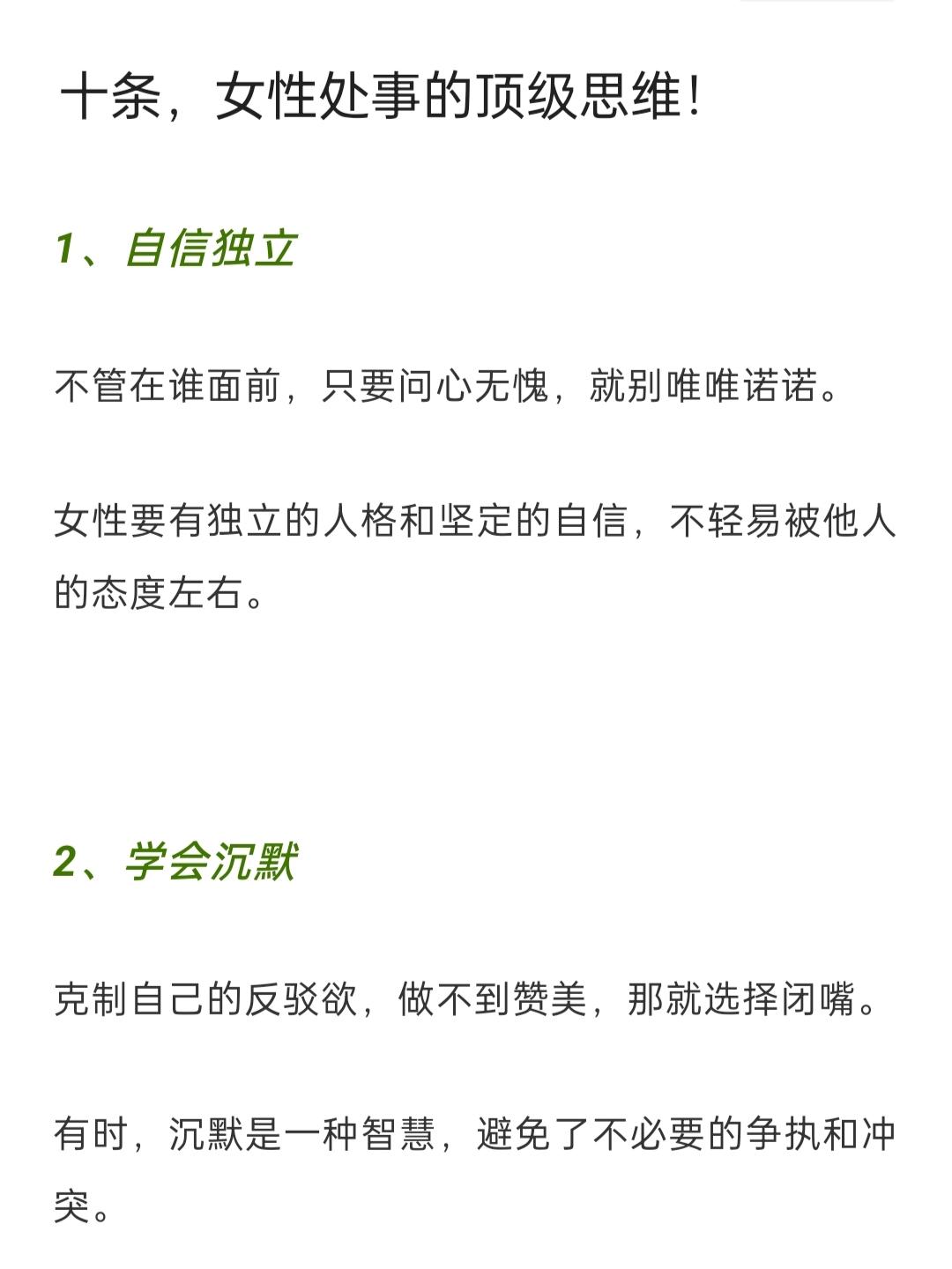 10条,女性处事的顶级思维🔝。📖自信独立📖学会沉默📖谨守秘...