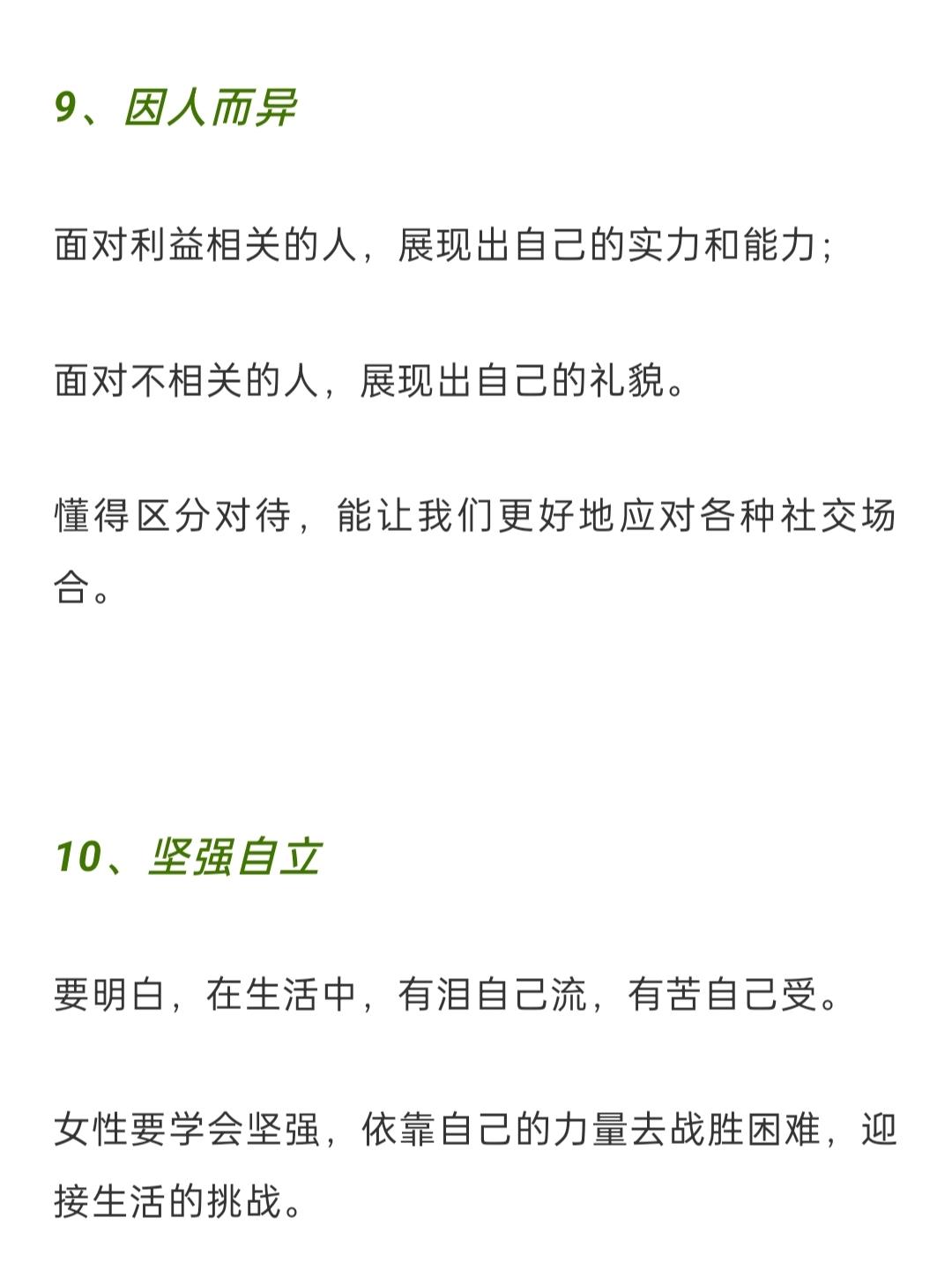 10条,女性处事的顶级思维🔝。📖自信独立 📖学会沉默 📖谨守秘密 📖尊重他人 📖谨慎借钱 📖关注自身价值 📖及时止损 📖巧妙应对 📖因人而异 📖坚强自立 🎀