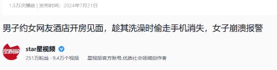 湖北咸宁,女子在网上认识一名男子,没几天男子约她开房,女子则是打扮的漂漂亮亮去赴约,见面后,男子让她先洗澡,没想到洗完澡后,却发现男子连带自己的手机都见了,她这才发现了不对劲,女子连忙报警! “我要查监控,我东西丢了”,王某(化名)急匆匆的跑到酒店前台说道,前台的工作人员则是很懵。 眼前这个女子才刚刚入住没多久,就说自己的东西丢了,还说要报警一时间他们也不知道该怎么办了,只能等到警察的到来。 (信息来源:star星视频 2024-07-21《男子约女网友酒店开房见面,趁其洗澡偷走手机消失,女子崩溃报警》) 原来这位王某的女子是和熊某一起来定的房间,他们两个是在网上认识的,当初王某看到下熊某的照片,感觉这个男子还挺帅的,便和他聊了起来。 刚开始两个人只有一搭没一搭的聊着,后来慢慢的就聊出感情了,两人就成为了网恋对象,而这个熊某在网上也是表现的很体贴。 其实就是只用动动嘴就将王某给哄得团团转,而王某也是个恋爱脑,熊某说什么都相信,熊某承诺她会对她好的,还会给她买各种东西,这些王某都信了。 后来熊某感觉时机成熟了,就约着王某见面,而地点就是在酒店里,最奇葩的是这个酒店还是王某花钱订的。 熊某让王某先去房间等他,而王某也照做了,在等他的这段时间,王某紧张的小心脏都快蹦出来了。 王某当天还画着美美的妆容,穿了漂亮的衣服,满心期待的等着这个所谓的网恋男友,但是让她没想到的是,接下来的事情并没有像她想的那样。 熊某进房间后看到王某则是愣了一下,在他心里王某并没有照片好看,但是他这个时候并没有表现出来。 而王某在见到熊某的那一瞬间,彻底越陷越深,因为她觉得熊某比赵片还要帅的多,完全长在自己的审美之上。 然后熊某就找借口说让王某先去洗澡,王某听到对方这么的直白,脸瞬间红了起来,身体却很诚实的跑去卫生间洗澡,她脑子里想的都是等会自己应该怎么表现。 殊不知这个时候熊某已经溜之大吉,而且他在走的时候,还顺手将王某的苹果手机和包包给拿走了。 等着王某洗完澡羞涩的出来后,发现房间里没有一个人,她想着拿手机打个电话问一下,才发现自己的手机和包包都不见了,这可把她给气坏了。 穿好衣服就跑去前台报警要查监控,后来熊某被抓到,他表示自己很缺钱,并不像自己在网上说的那样很有钱,可以给她买各种东西。 网友们纷纷表示这位男子还是没看上王某,不然当时就不会直接偷着手机就走了,而是会先享受一番在离开的。 所以说网恋需谨慎,很多的情况下都是见光死的,而且对方说的话并不能全都信,要有一定的判断能力,避免自己受到伤害。 对于这样的事情各位有什么想说的吗?