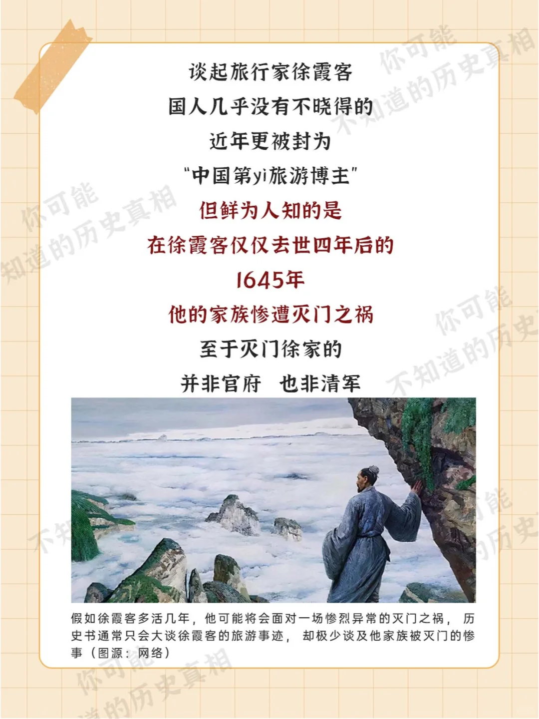 [微笑R][微笑R][微笑R] 一辈子不用上班 专心去旅游 估计是许多人的终极梦想 [赞R][赞R][赞R] 在中国历史上 也确实有这样的一个人 他就是徐霞客 [斜眼R][斜眼R][斜眼R] 但却很少人知道 徐霞客死后不久 他的家族 便遭到了可怕的灭门之祸...... [惊恐R][惊恐R][惊恐R]