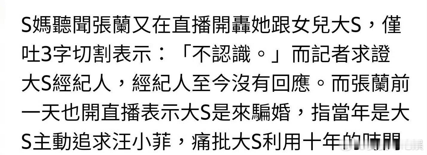 #大S[超话]##大S妈妈说不认识张兰#真的太喜欢这样的一个氛围感了,而且对于我们来说好像也有不一样的魅力出现,而且我真的太喜欢你们两个之间的故事了,我好想听一听