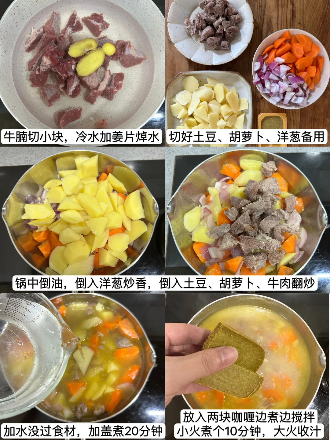 咖喱牛腩蛋包饭,加600ml水俩咖喱块,适中!要重口?多加一快,简单窍门get!