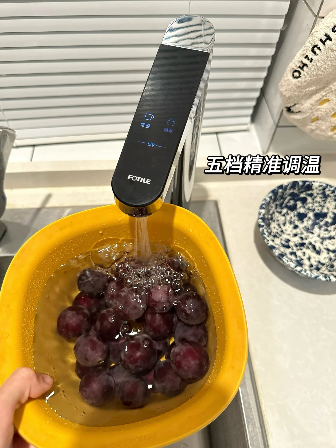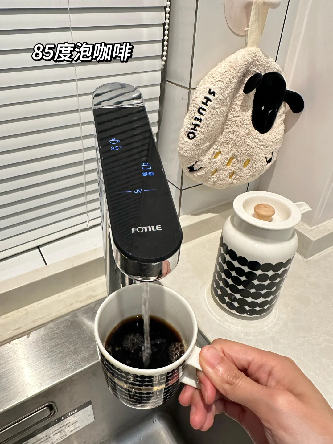 ▫️其次使用便捷。它的龙头有5档精准调温,常温直饮只需要7秒就能装满一杯水,老快了!40度泡奶粉,60度泡蜂蜜水、85度泡咖啡、95度泡茶等,满足了家里人的各种用水需求。我厨房基本只用这个龙头了。上学前给孩子保温杯里水再也不用等了。现在洗菜洗水果,煮饭煲汤都特别省时间。