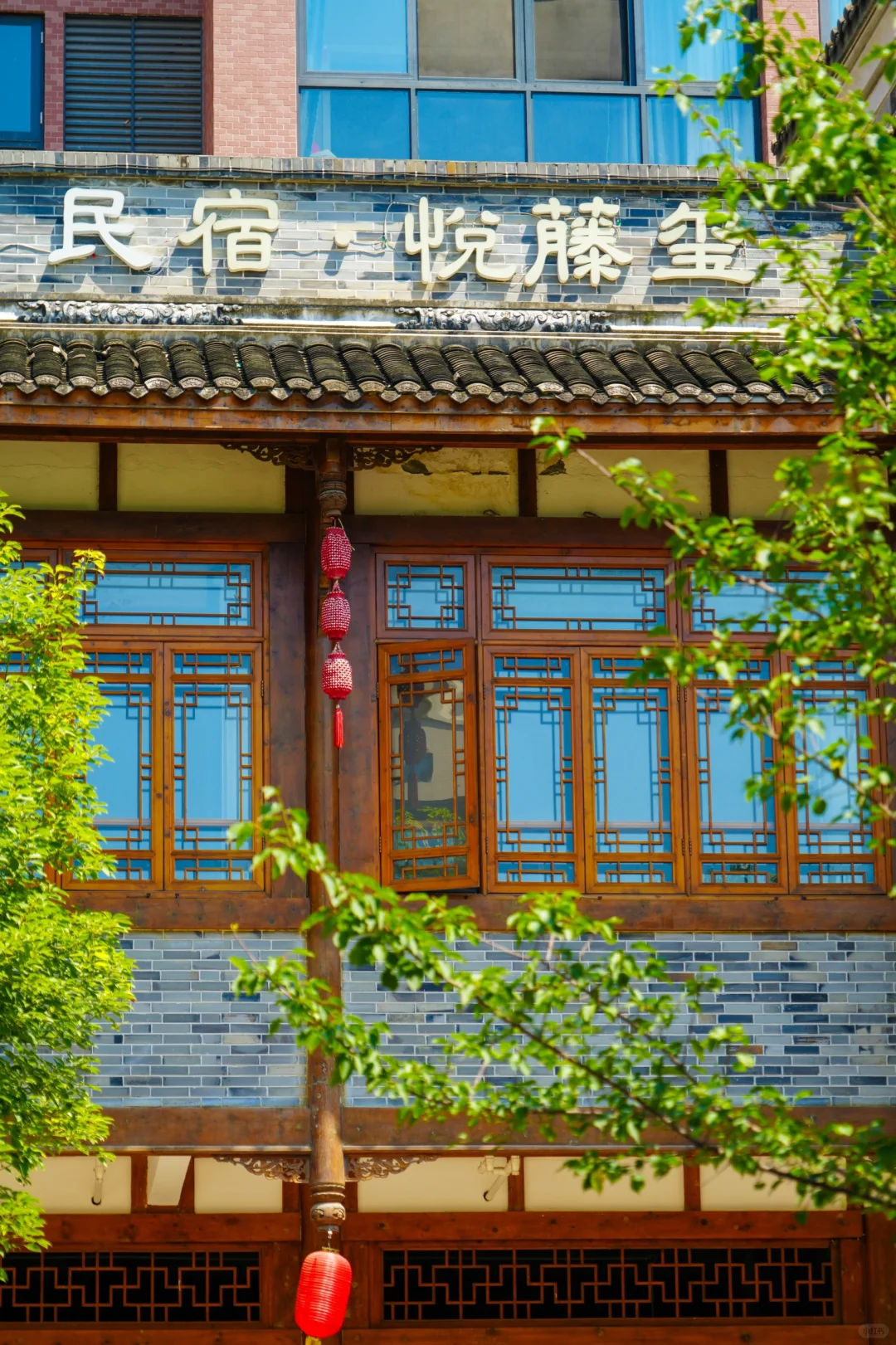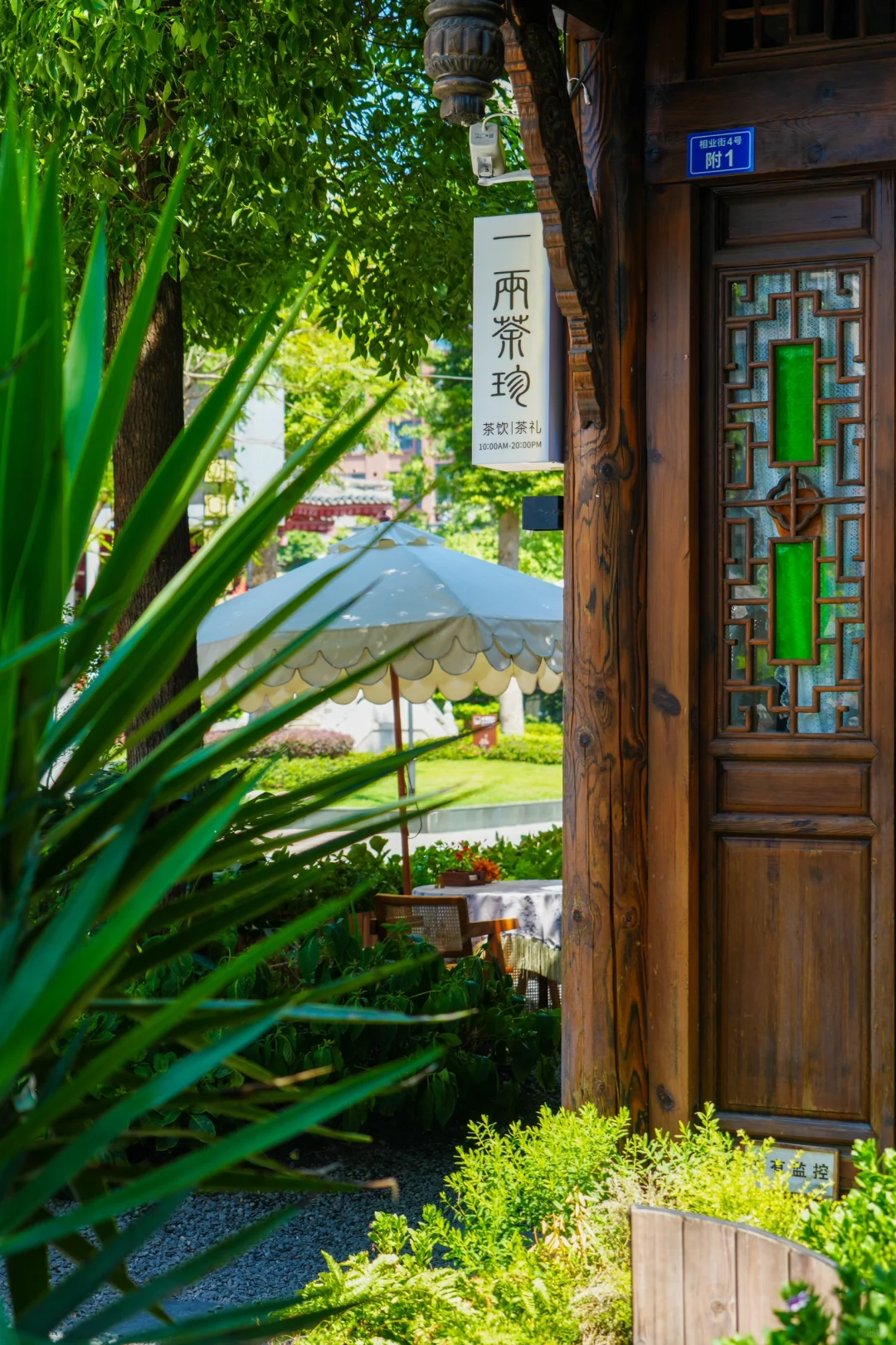 不仅如此,这还有很多网红店,充满古风的店铺一两茶珍正适合喝下午茶,还能体验到宋代点茶的传统文化,而入住的话可以选择悦藤玺藤编民宿,门口藤编大熊猫融入了非遗藤编和大熊猫两种四川元素,店内暑期也有非遗藤编的特色体验。