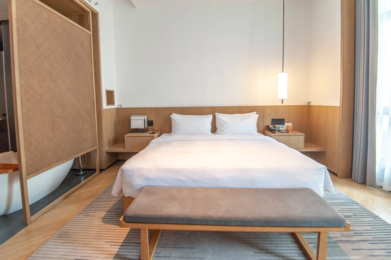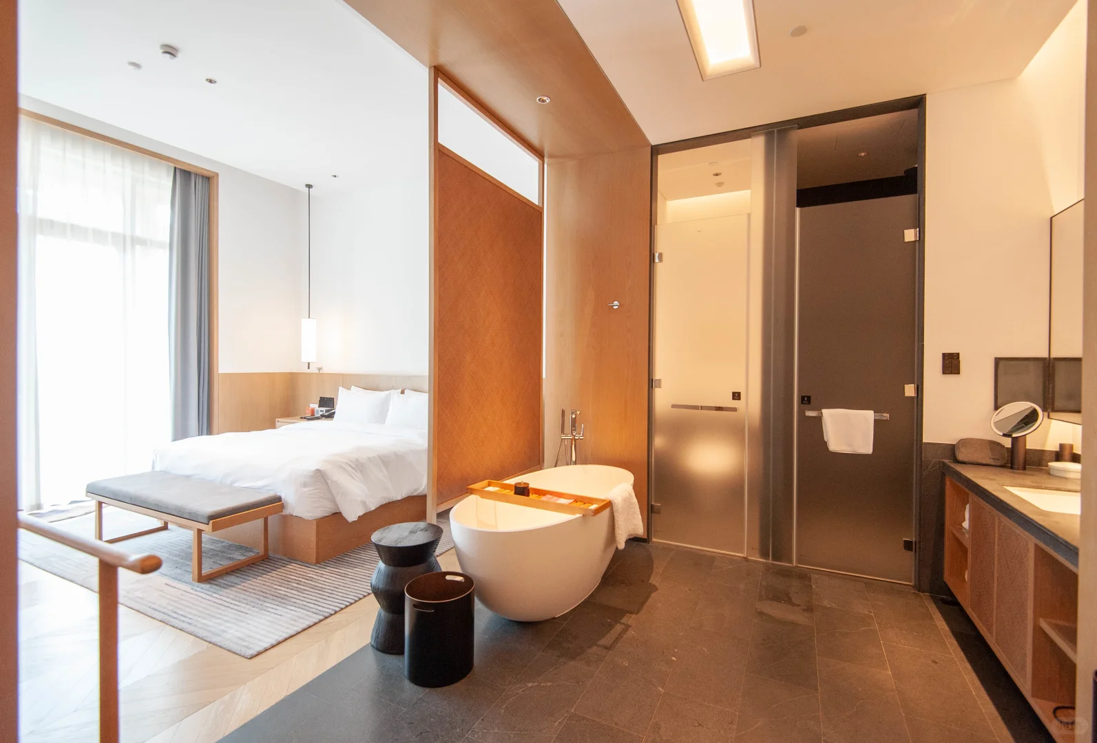 房间有顶配的Serta品牌床垫,B&O蓝牙音响、顾燕新手作紫砂壶、帕尔马之水/菲拉格慕洗漱备品、400TC顶级纯棉床品、助眠音波 、喜⻢拉雅盐灯、戴森吹风机、棉柔巾,给的都是奢华体验。