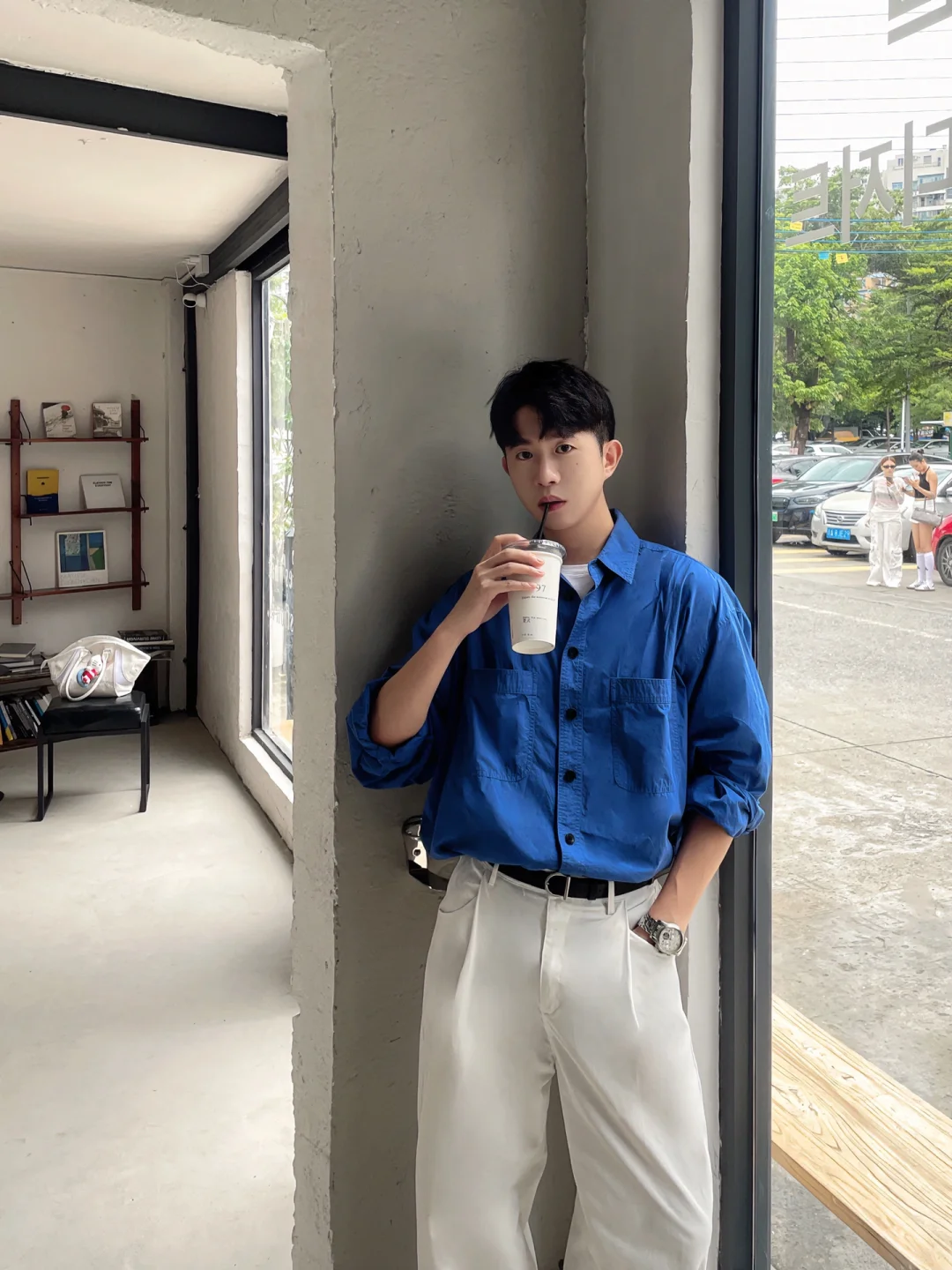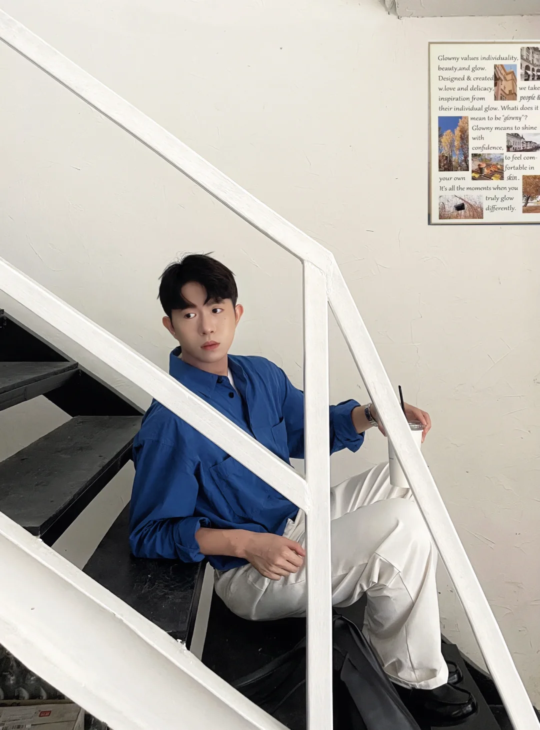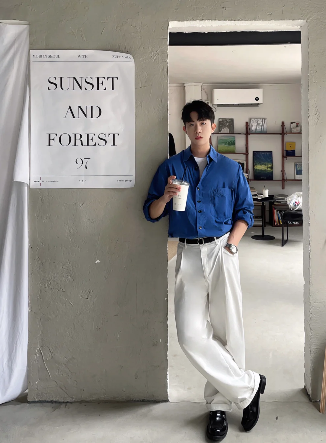 📝 以简约基础款为主 没有复杂的叠穿 适合喜欢松弛极简主义的淡颜系男生 蓝色衬衫+白色休闲裤+黑色乐福鞋 干净清爽利落的日常慵懒高级感 我的上班职场通勤穿搭 . 记得关注我🙋🏻♂️解锁男生秋季的时尚潮流穿搭技巧 ——————————————————