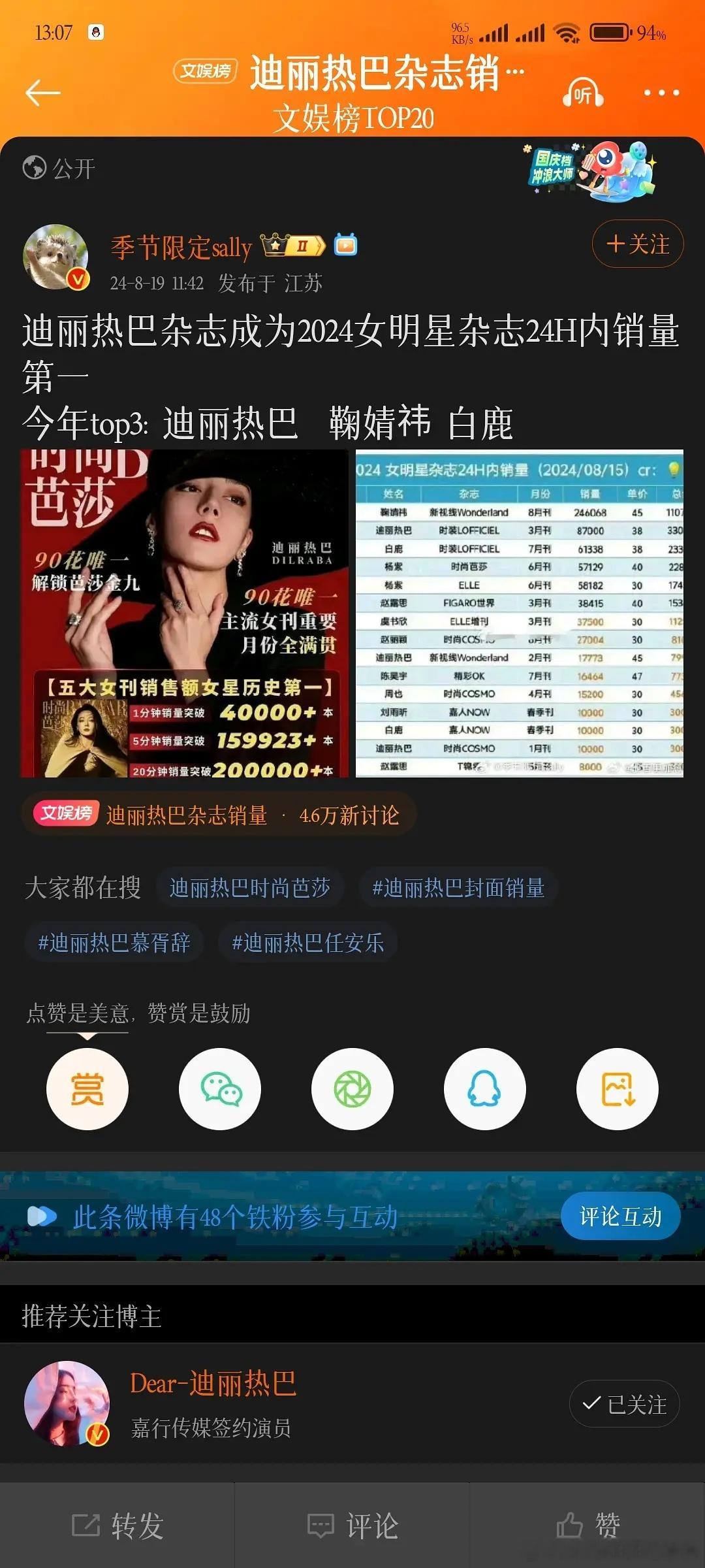 今年经济不景气条件下迪丽热巴粉丝购买力还那么惊人,绝对是超过鞠婧祎的顶流的存在!