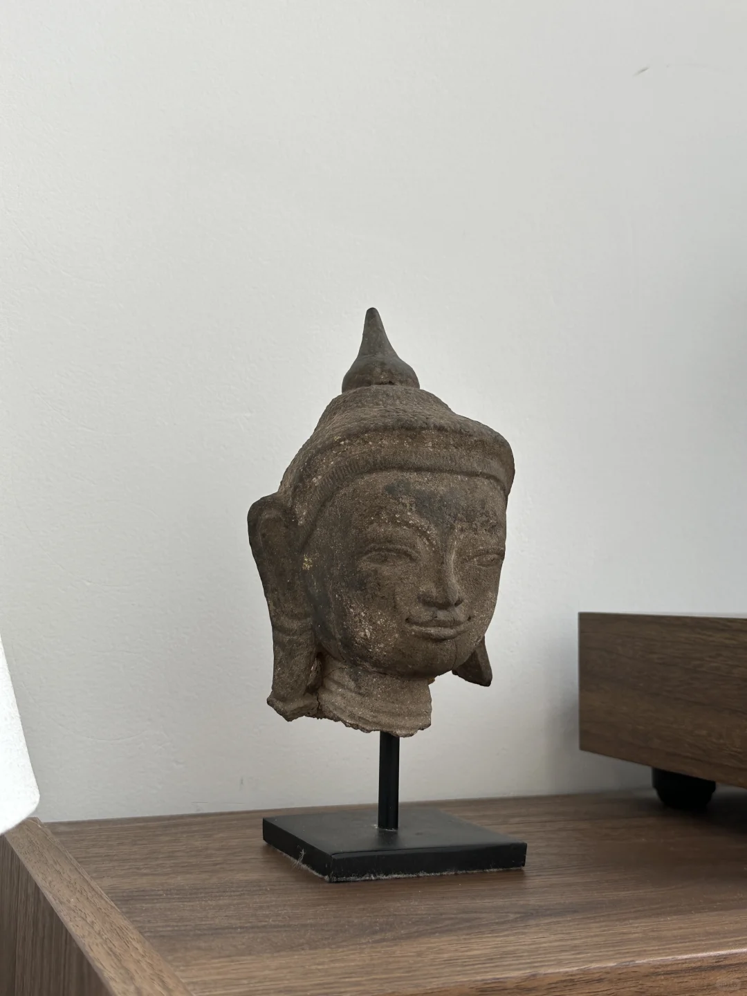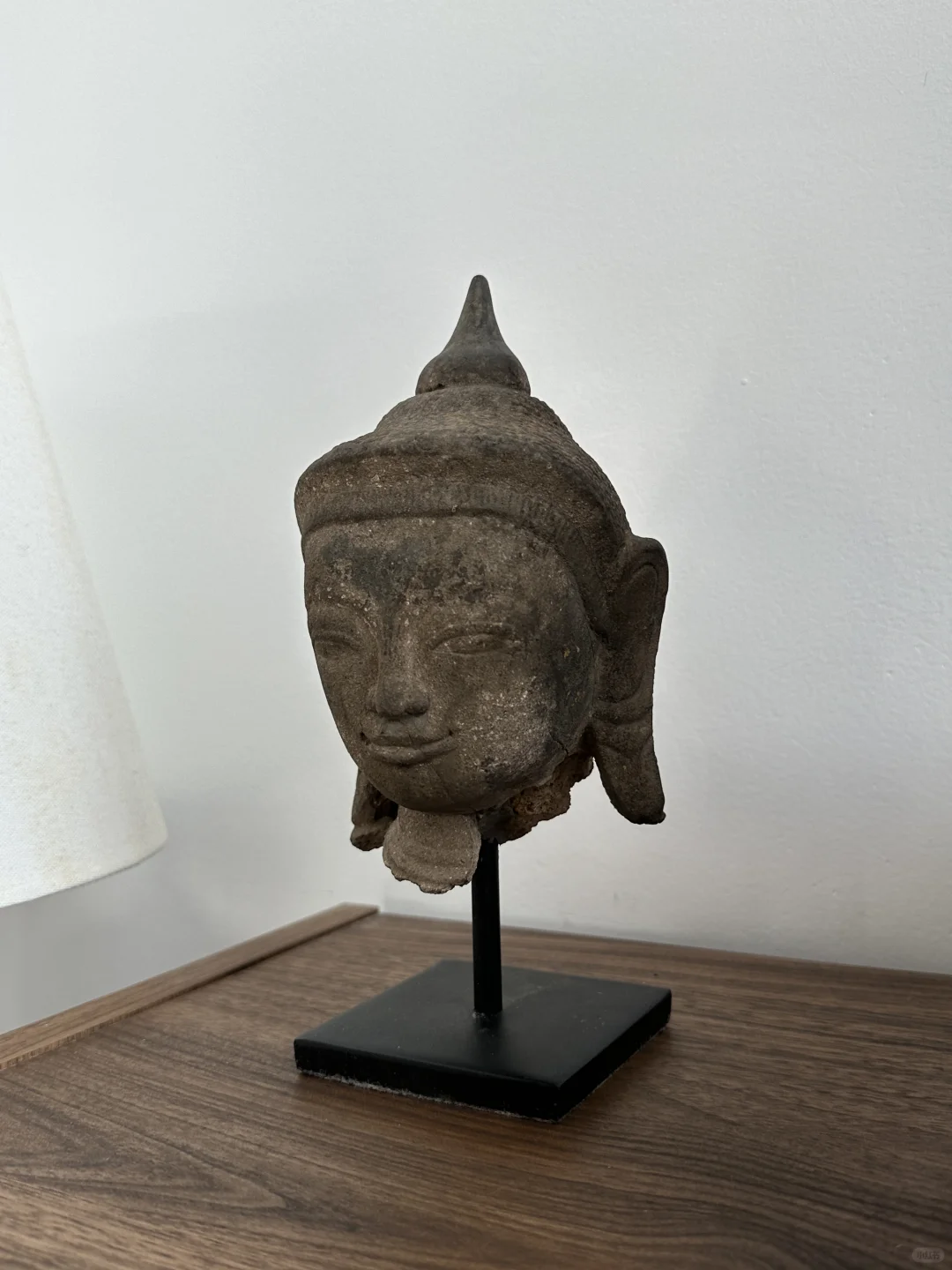 缅甸17世纪Ava时期 泥胚纸塑夹苎佛首 缅甸早期夹苎用泥塑形后再用纸糊在外层漆金。 高度:22cm 头围:30cm 净高:16.5cm