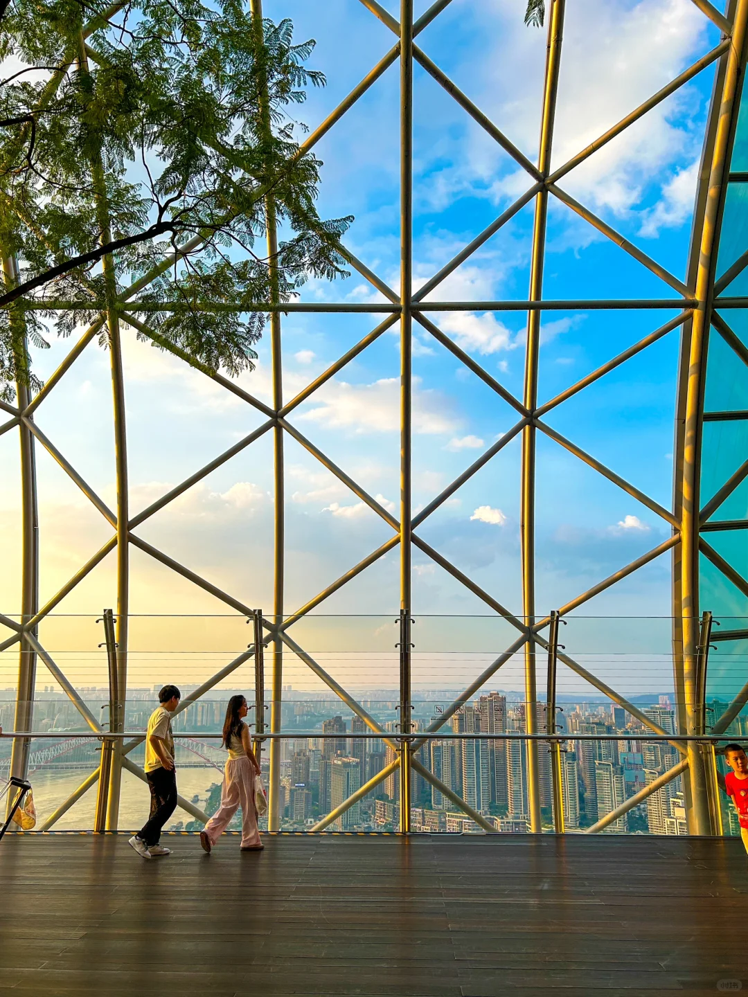 都说重庆是8D魔幻城市,城市建设和夜景均是一绝,现在在地标建筑来福士广场上又新添赏景好去处—国内首个城市高空乐园重庆来福士云端乐园! 🌟天空之境:250米高空之上的露天全透明超大观景平台,轻松坐拥山城两江四岸的全貌,也是拍照打卡的好去处,分分钟刷爆朋友圈 🌟 云中漫步:国内首座横向摩天楼380米环形高空步道,位于水晶连廊之上,宛如澳门塔一样可以体验行走在云间的skywalk,推荐日落时前往,仿佛落霞都能触手可及 🌟 云中飞跃:如果你觉得上述项目还不够刺激,那么西南首个城市高空江景秋千“空中飞跃”就是必打卡的体验,瞬间在数百米的高空中划下完美弧度,要的就是这种心跳感 是不是感觉超好玩呢?还不快冲!!