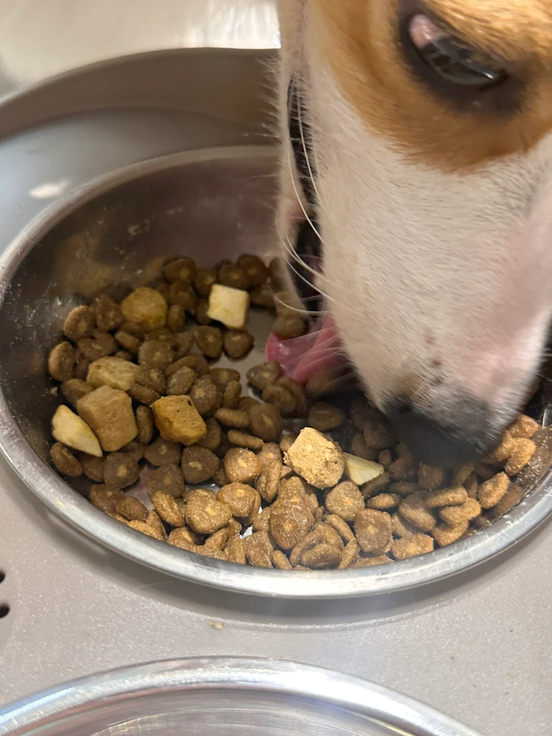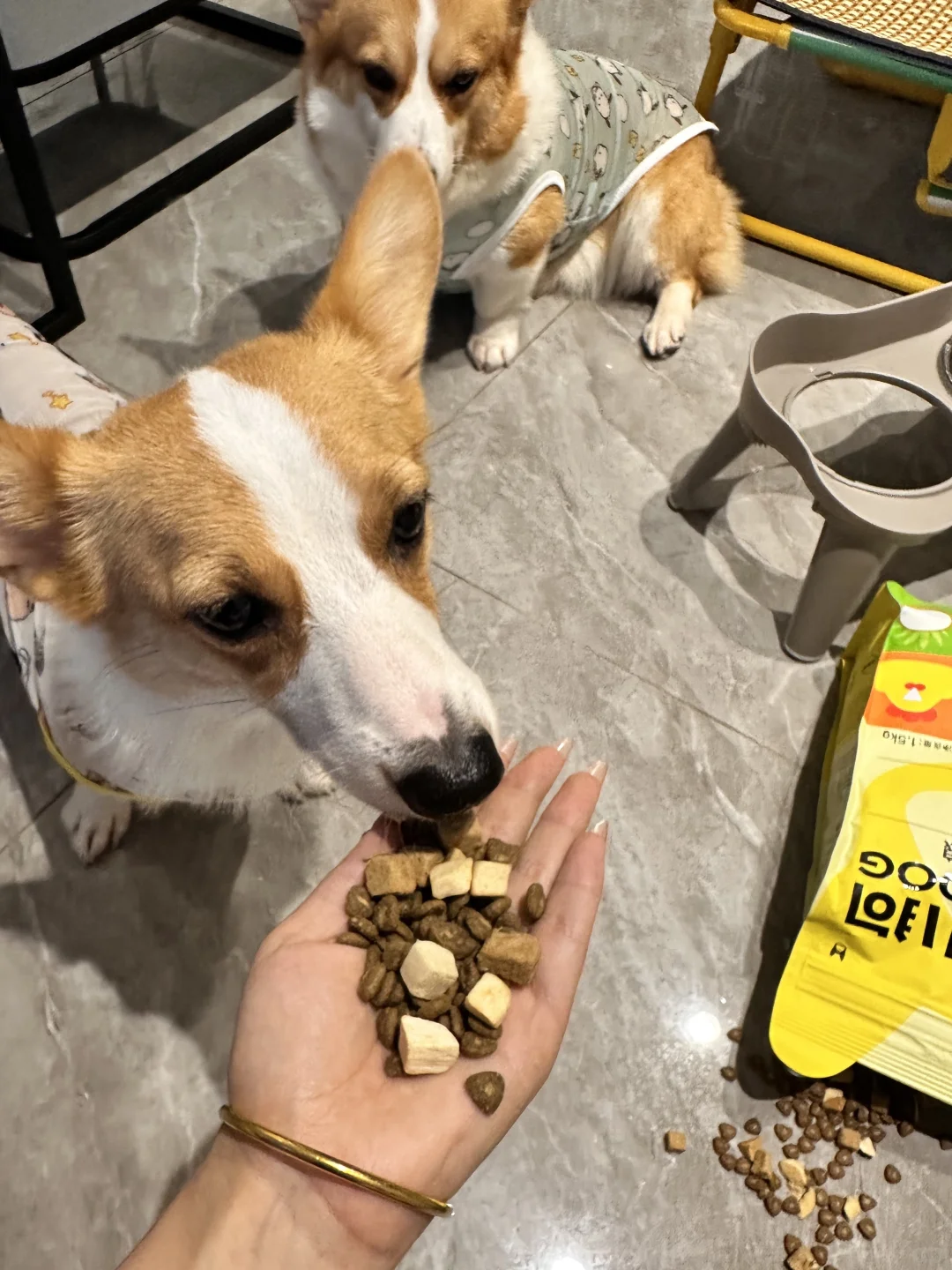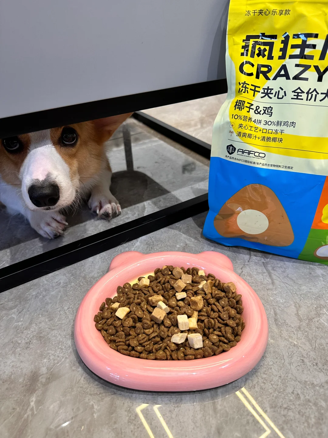 同事送了几包狗粮,说她家狗喜欢吃,拿回来给我家挑食俩狗试试,没想到没到饭点,一个不注意就开启了自助餐模式!恨不得一整包都给我霍霍完😓 还别说这狗粮长得和封面一样是三角形,而且里面还塞着肉,是椰子鸡口味的,看着真像三角饭团🍙。 每一颗粮都夹着鸡肉和椰蓉,还有椰子块冻干🥥这个配方妥妥的夏天风味!🌿 🍃这粮也不油腻挺适合夏天吃的,目前吃了三天,过渡的很好🏝