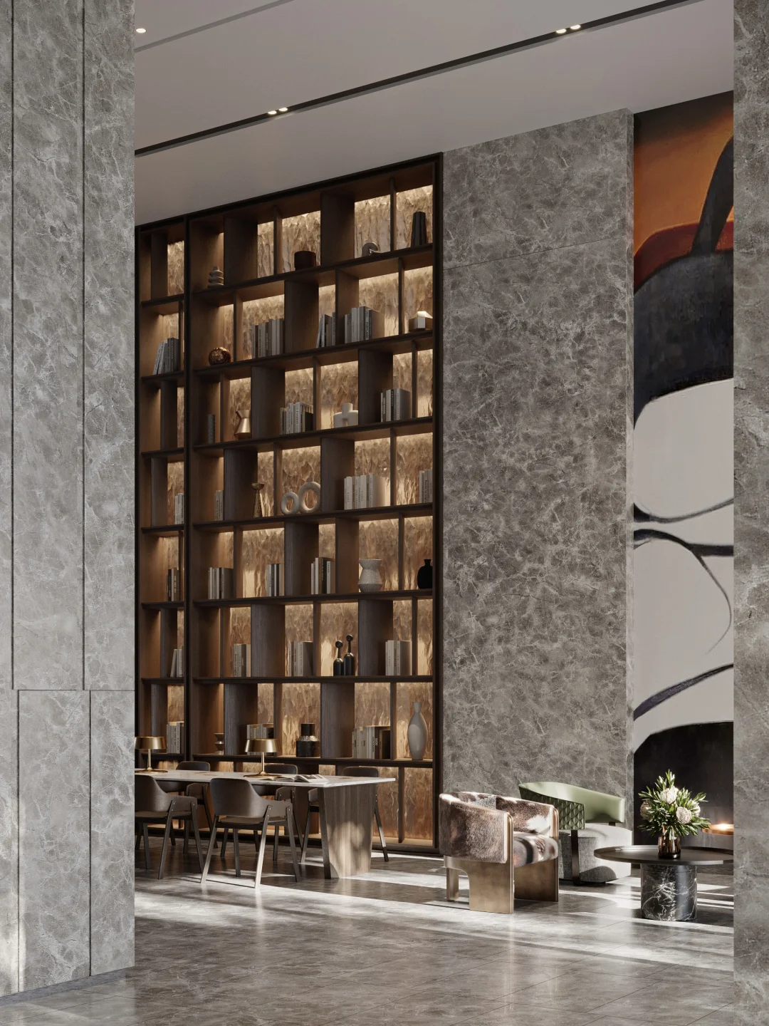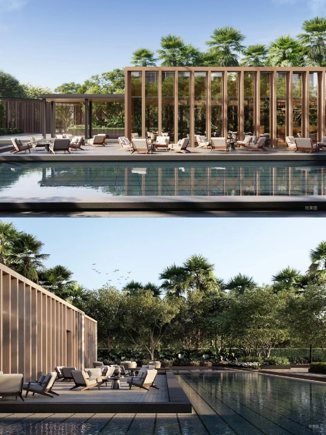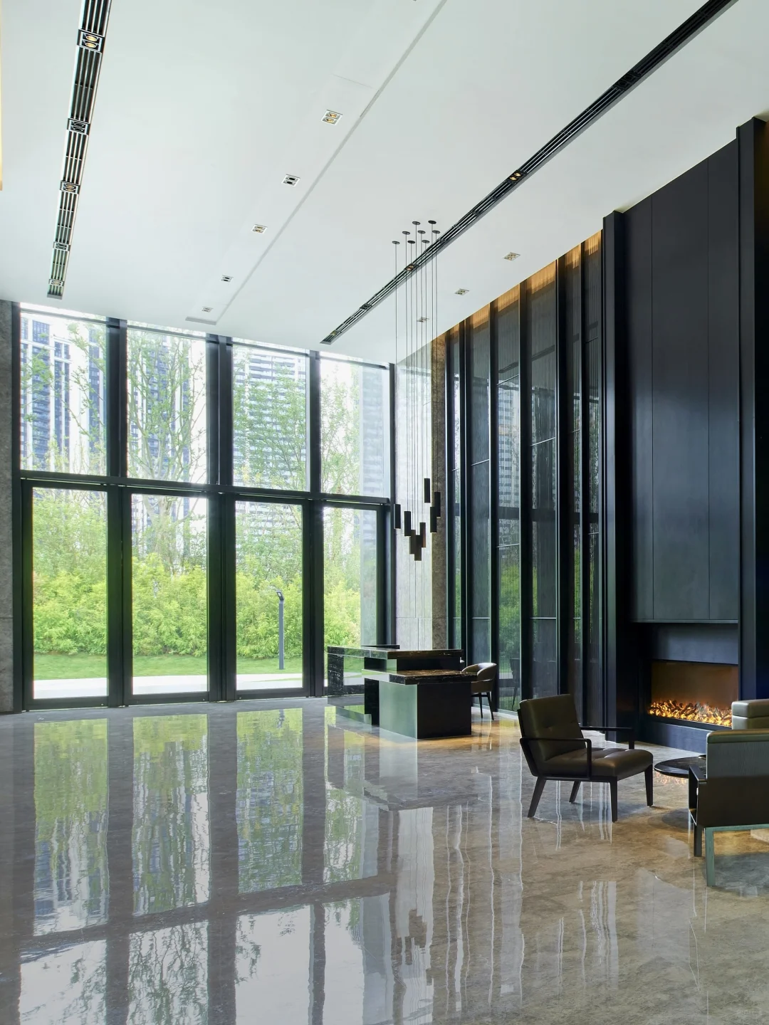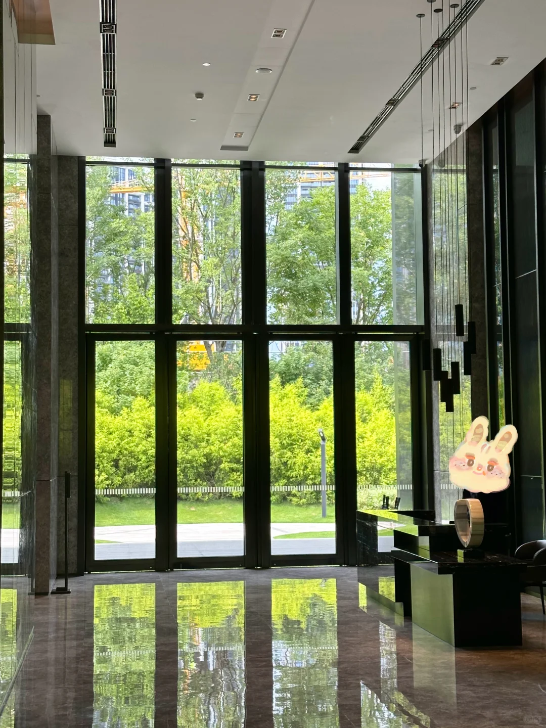 顺便去看了最近很火的蓝庭,入户大堂质感媲美高奢酒店,正儿八经酒店式归家礼序(图8-图13),室外中庭还设置独立的休闲会所(图7),咖啡图书馆、健身中心也是配置齐全。这也恰好是豪宅业主日常中需要的,是生活场更是社交场,还是排面。