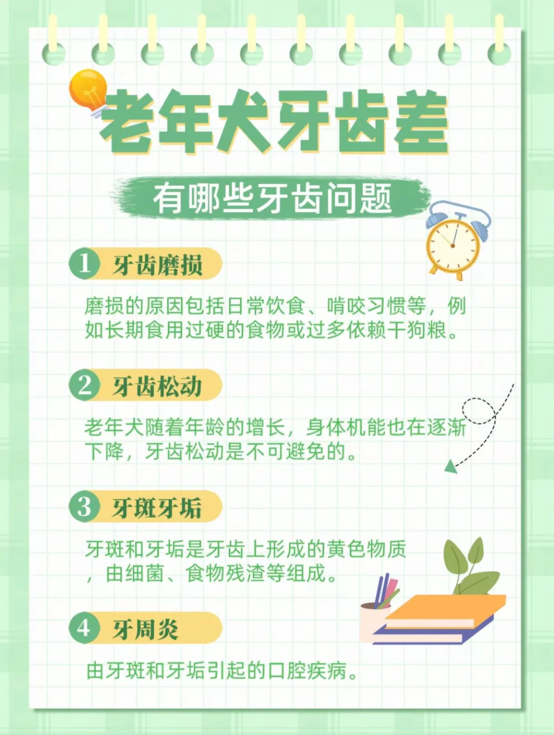 进入老年期的狗狗随着年龄的增长,身体会出现各种大大小小的问题,不关注起来的话口腔细菌可能会随着血液感染心脏🫀我们先要了解老年犬会有哪些口腔问题:
