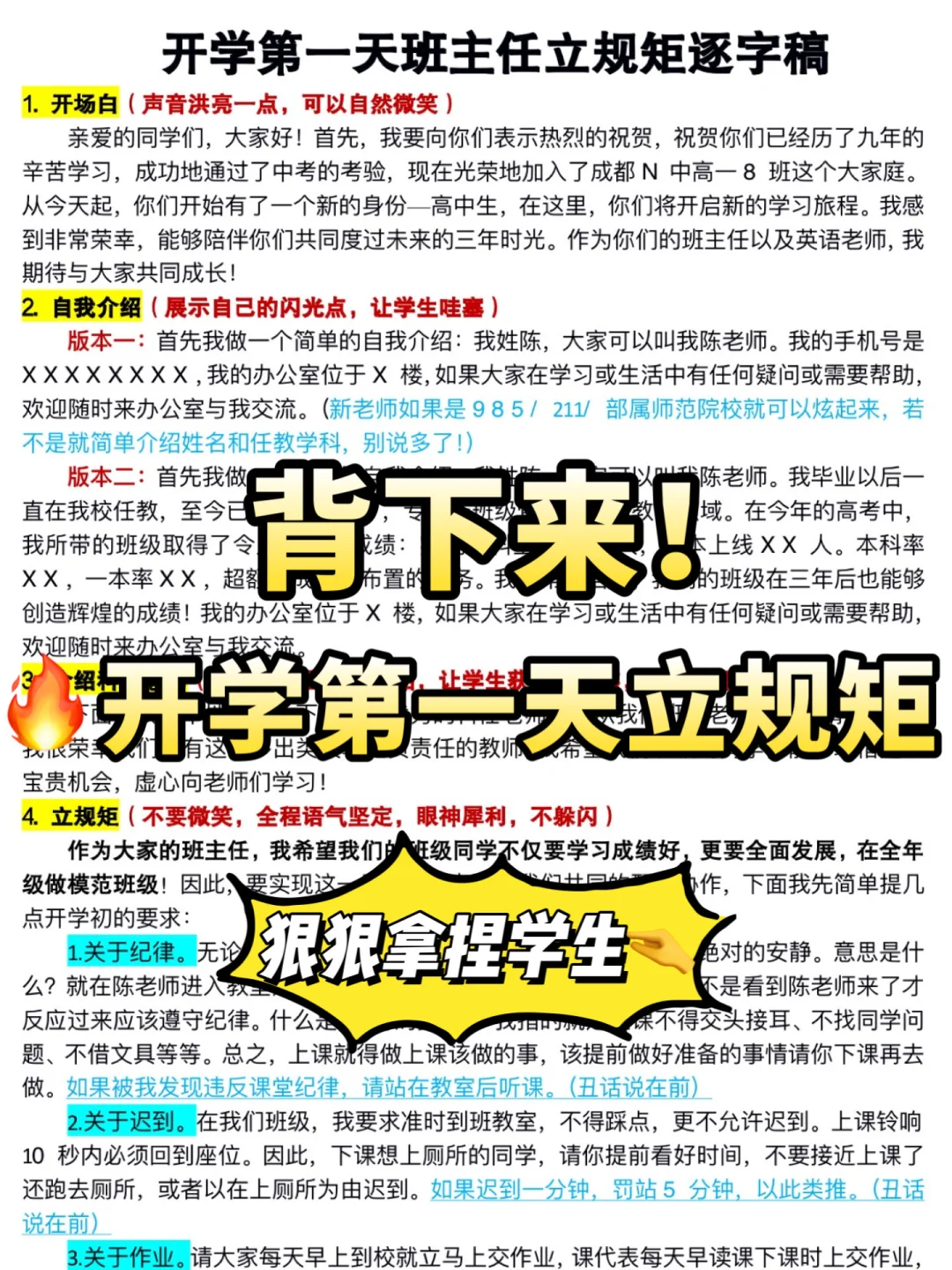 背下来‼️班主任开学第一天立规矩,学生怕了!