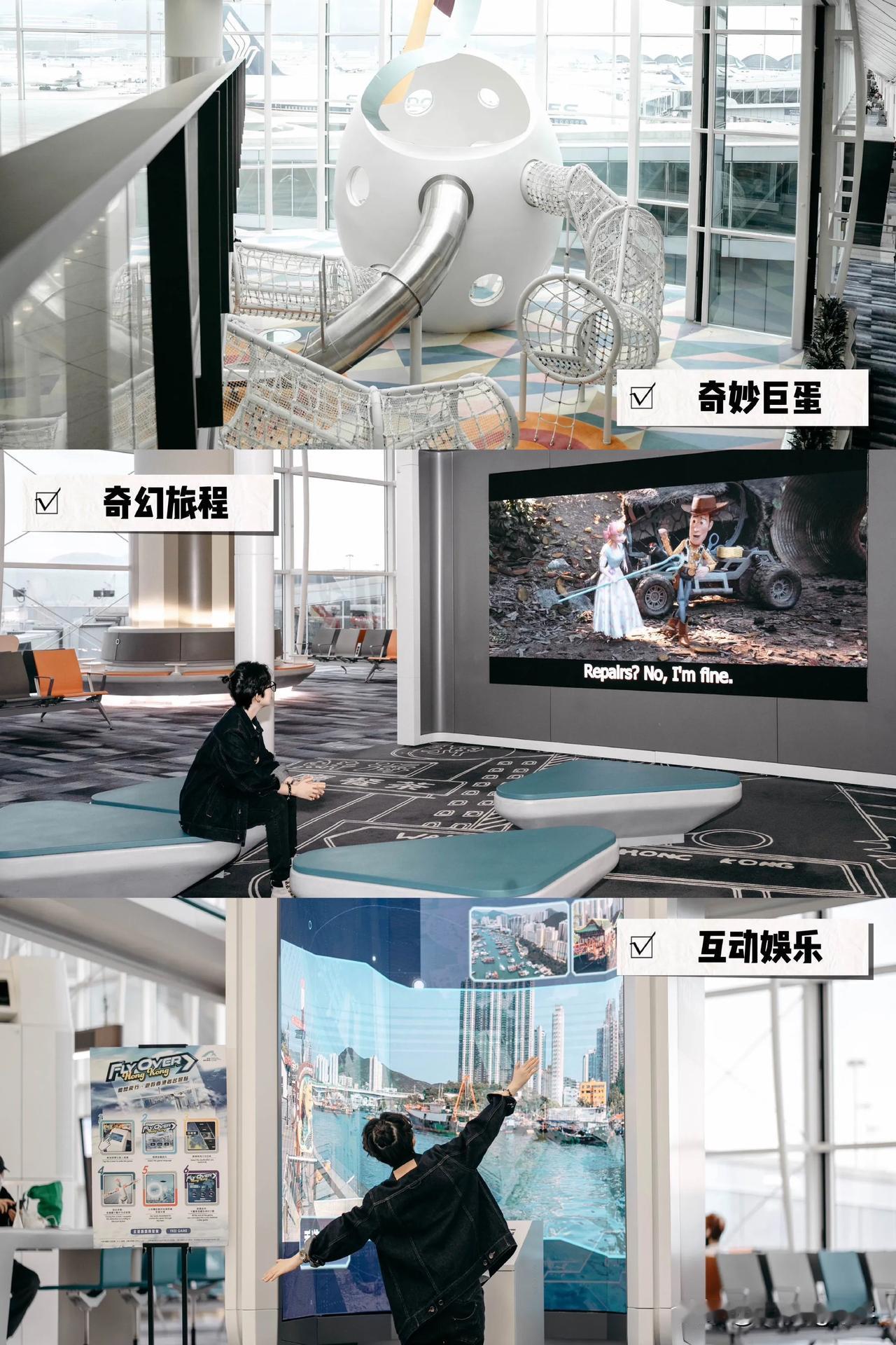 #香港过关分享# #今天过香港# #去过多少次香港# 我宣布👉香港国际机场实在太好拍啦!!!看完我这篇攻略,你的候机时间也将会变得更充实哦😎今天,就跟大家一起解锁如何在香港国际机场拍出旅行大片‼️ ✔️大型飞机模型 一进入T1航站楼的出发大厅,就能看到悬挂在空中的飞机模型“沙田精神号”啦,人可以靠在栏杆看前方拍一张。旁边A带的窗外也是一道风景线,还能近距离抓拍飞机飞过的瞬间哦~ ✔️瀑布庭院 从高耸的瀑布到地上的溪流,这动画和音效也太逼真了吧!妥妥的自然+科技完美融合,就像把雨林搬进了机场一样🌲人可以靠近荧幕,只要检测到有人经过,就会亮起不同的星光,就算随意摆拍都能假装在户外哦~ ✔️禁区大堂中轴线 安检后,从二楼餐饮区可以找到禁区大堂的中轴线,这里是打卡1号航站楼壮丽景观的最佳机位之一哦👍人可以站在画面1/3的位置,这样的构图可以拍到中轴线哦,而且照片看起来也很舒服。左手边还有一个区域可以拍到飞机停靠在廊桥的画面,幸运的话还能跟A380同框哦~ ✔️天际走廊 号称全球最长的机场禁区人行天桥一定要来打卡!全长200米,靠窗的地面竟然采用了玻璃材质设计,运气好的话还能看到飞机从脚下滑过哦!这个时候可以跟飞机来几张合照,站着或者坐着都OK,保证你帅出天际! ✔️候机休息区 休息区的机位也别错过哦,可以拿一杯咖啡,人看着窗外的飞机,这样的休闲时光也值得被记录下来哦~ ✔️巨型象棋 在35登机口附近,不但可以跟朋友下一盘巨型的国际象棋,还能把棋子当作拍摄道具哦! ✔️如果带着小朋友出行,可千万别错过“奇妙巨蛋”、“互动娱乐”、“奇幻旅程”这三个地方哦,可以玩游戏,又可以看电影🎬