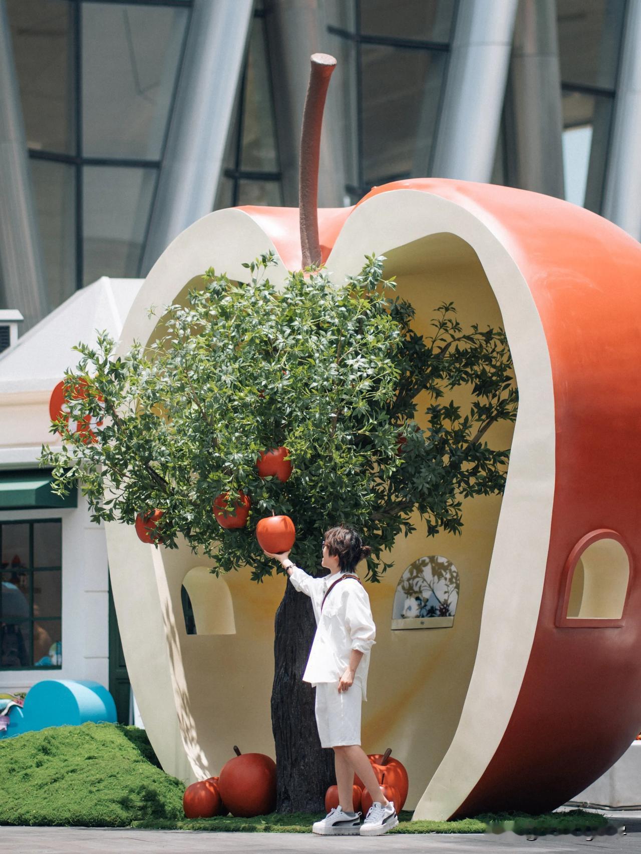 深圳湾新开的苹果市集 大家说city不city🤩 这次空降了巨型红苹果🍎和苹果树 整个市集都充满了夏天的味道 生命力都快溢出镜头啦~ 如果想拍点夏日多巴胺的照片 来这里就对了✅ 红绿相碰真的巨巨巨出片~ 📷拍摄机位 1、正对春笋大厦,拍摄苹果树侧面,树下的小苹果🍎可以拿起来当道具 2、以玫瑰花作为前景,用长焦拍摄苹果树正面 3、买了雪糕当道具的话,记得要马上拍,不然一会就融了,47块大洋只能撑个1分钟…😂 4、巨型underbobo虽然不是红色系,但也好可爱 🎨后期调色 1、不想太红的话,只需要把红色色相往橙色调 2、降低绿色亮度,可以打造莫兰迪绿的感觉
