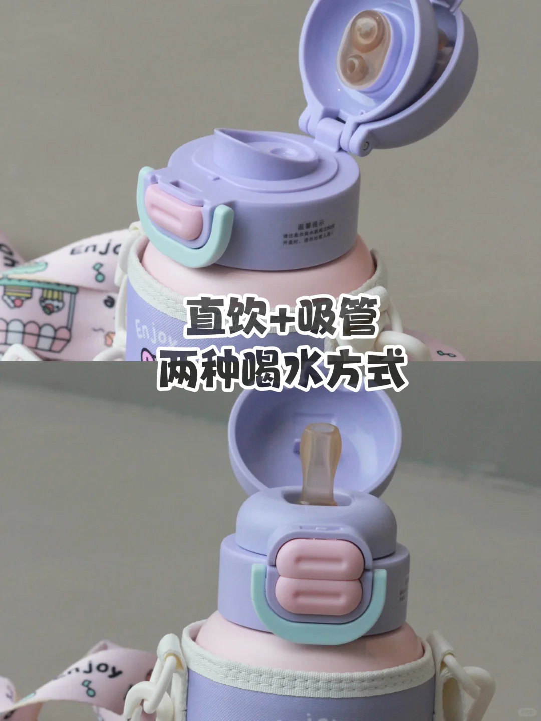 马上快开学了,给孩子新买的保温杯马上就用起来了,双饮两用设计,喝水也方便,保温时效也长,多喝热水挺好的,背在身上超方便,出门玩也可以随时随地背着~