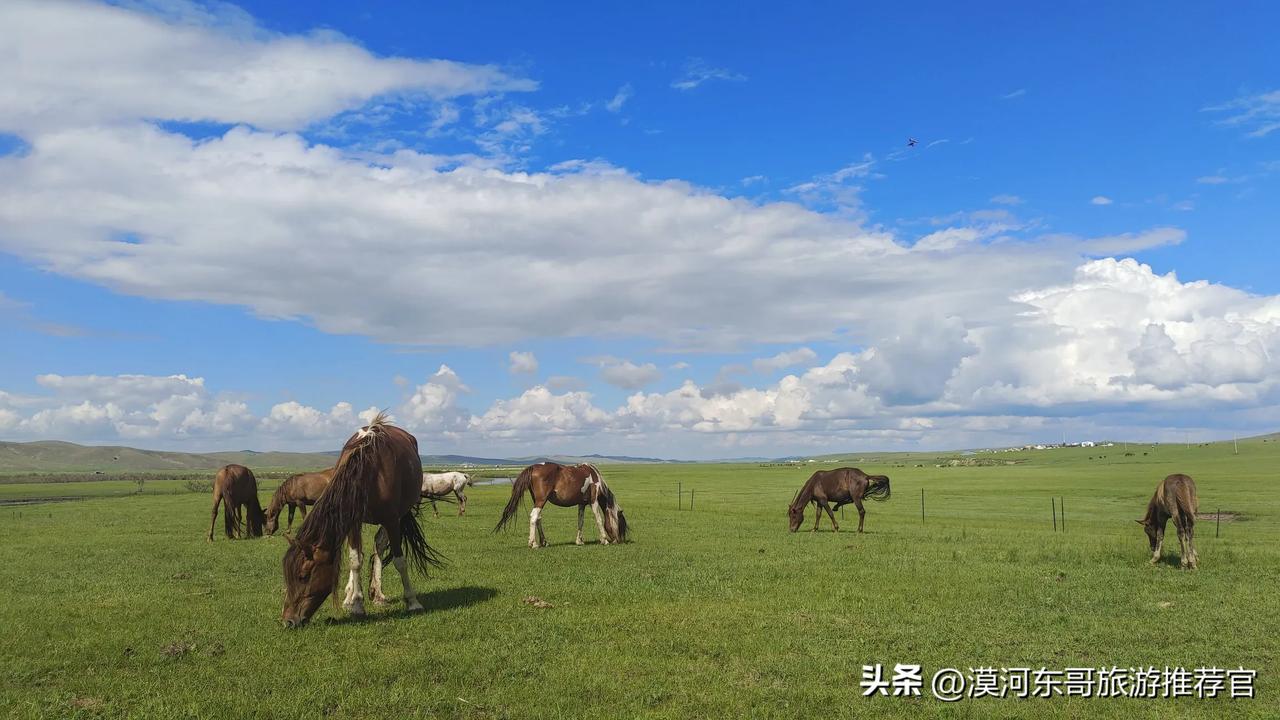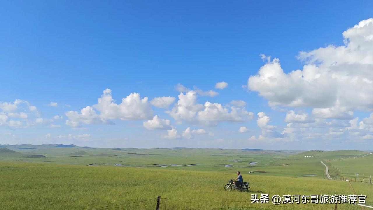#呼伦贝尔##感受大草原之美# #草原美图分享# #旅行者穿越草原# #旅行风光随拍# #漠河东哥旅游包车# 现在的呼伦贝尔草原景色! 你是否渴望一场,说走就走的旅行,让镜头捕捉你与草原的完美邂逅?呼伦贝尔大草原正以它无垠的绿意和蓝天白云,邀请您成为故事的主角,体验一场关于蒙古风情的梦幻之旅! 你能想象你身着盛装,在这片自由的天地间,牛羊悠然,蓝天如洗,你就是那幅动人心魄的画卷中最亮眼的色彩!