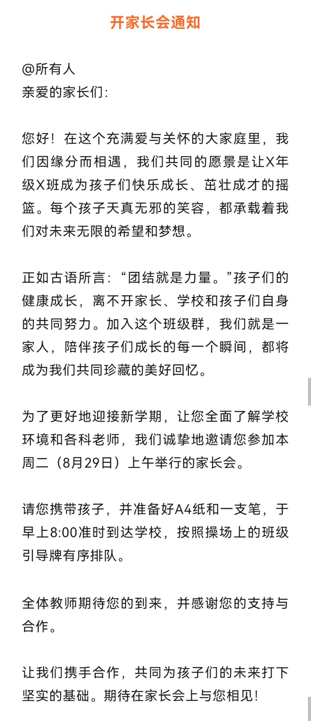 家长眼里,信息简洁就是天使,冗长通知直接变催眠术。开学通知,一句话能说清的,别让咱家长读千字文哦