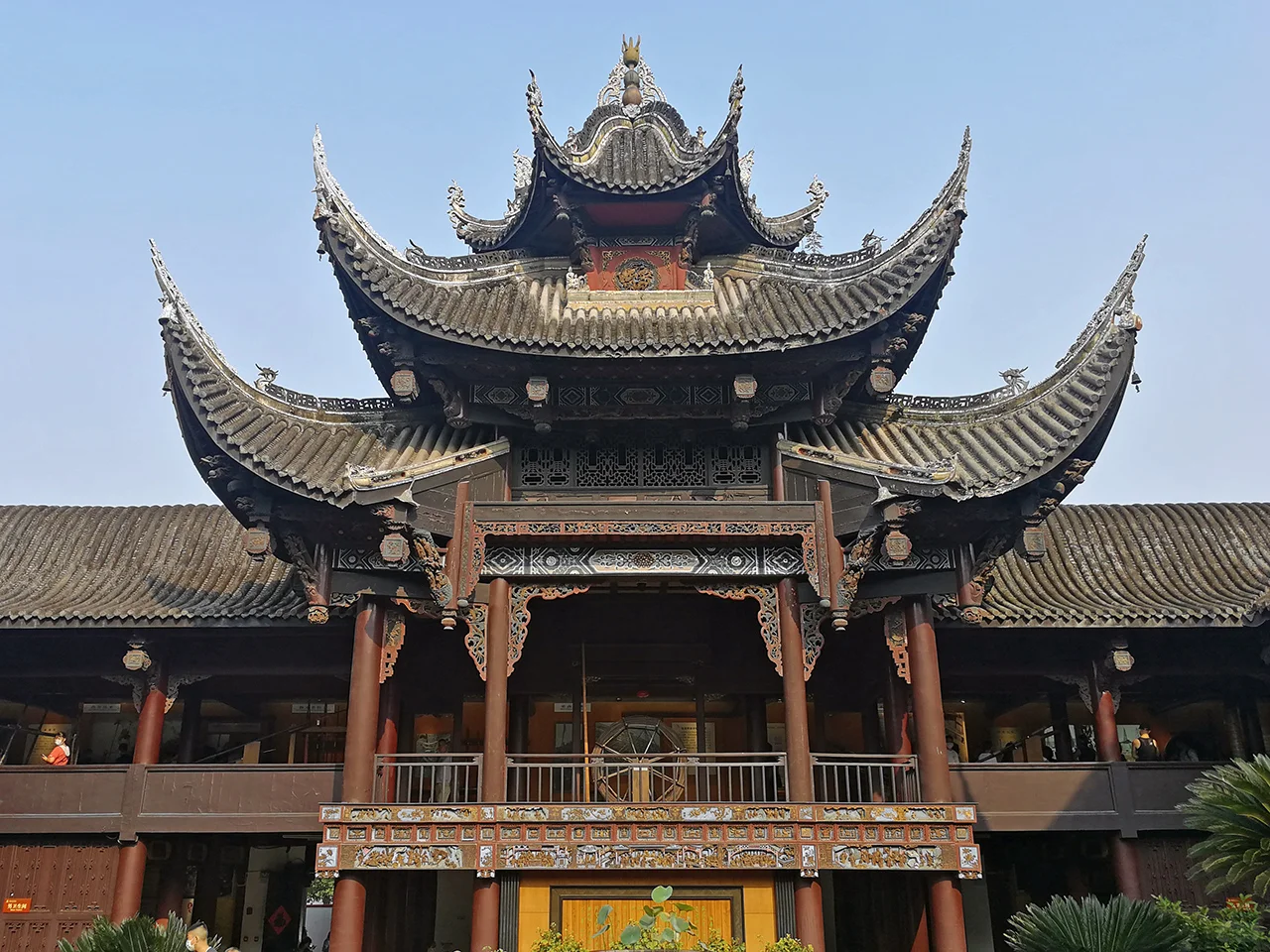 [自拍R]西秦会馆是清乾隆元年由陕西盐商创建,规模宏大,比一般会馆建筑规格高得多。一般会馆的戏台也就是个歇山顶,西秦会馆是三重檐攒尖盔顶,两侧廊庑一般就是两层楼,西秦会馆在楼中间还建有重檐歇山顶的贲鼓阁和金镛阁作为钟鼓楼。院坝后面是抱厅、奎阁、前殿、后殿,几进院子,两侧还有偏院,石栏杆上很多戏曲题材的雕刻,我就只认得一个牛郎织女。这些古建筑现在都辟为盐业历史的展厅。