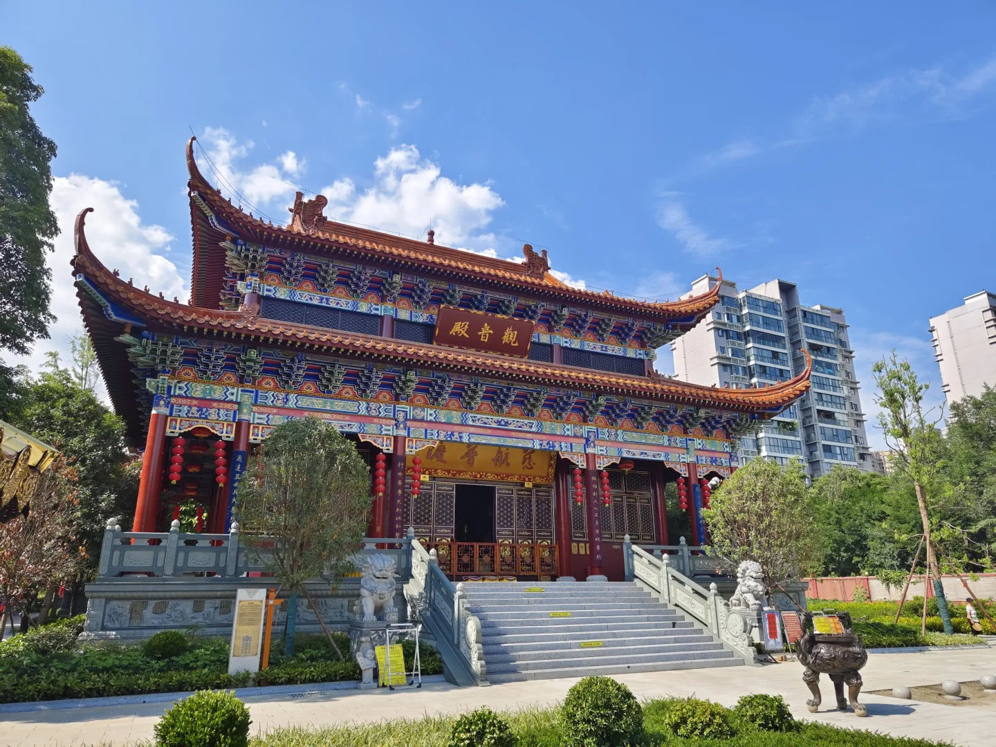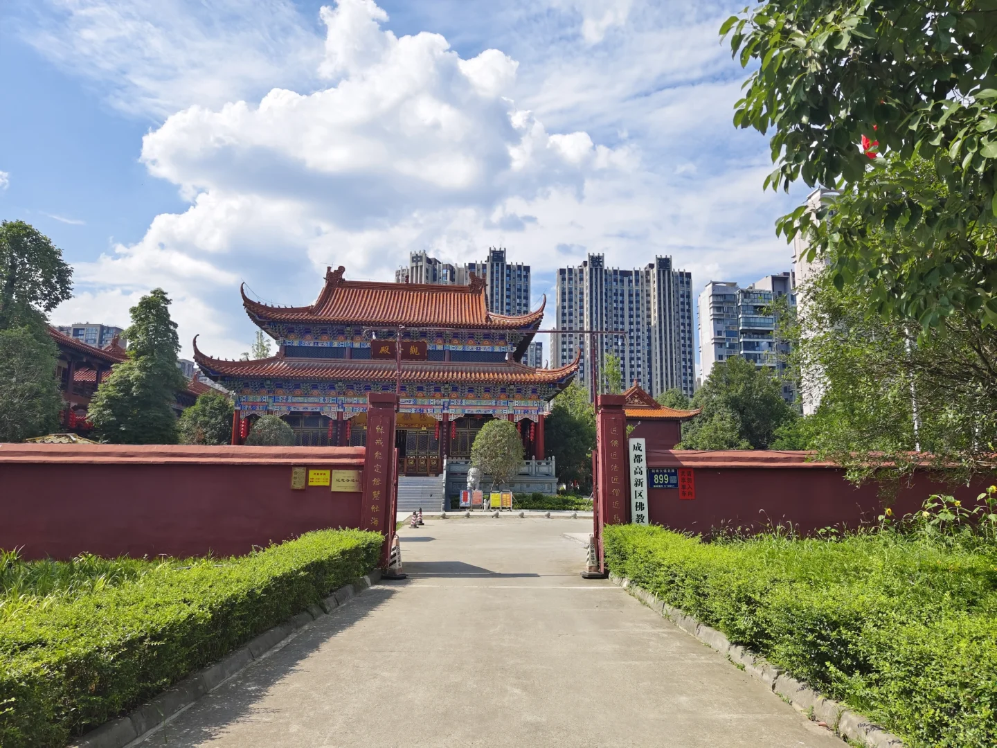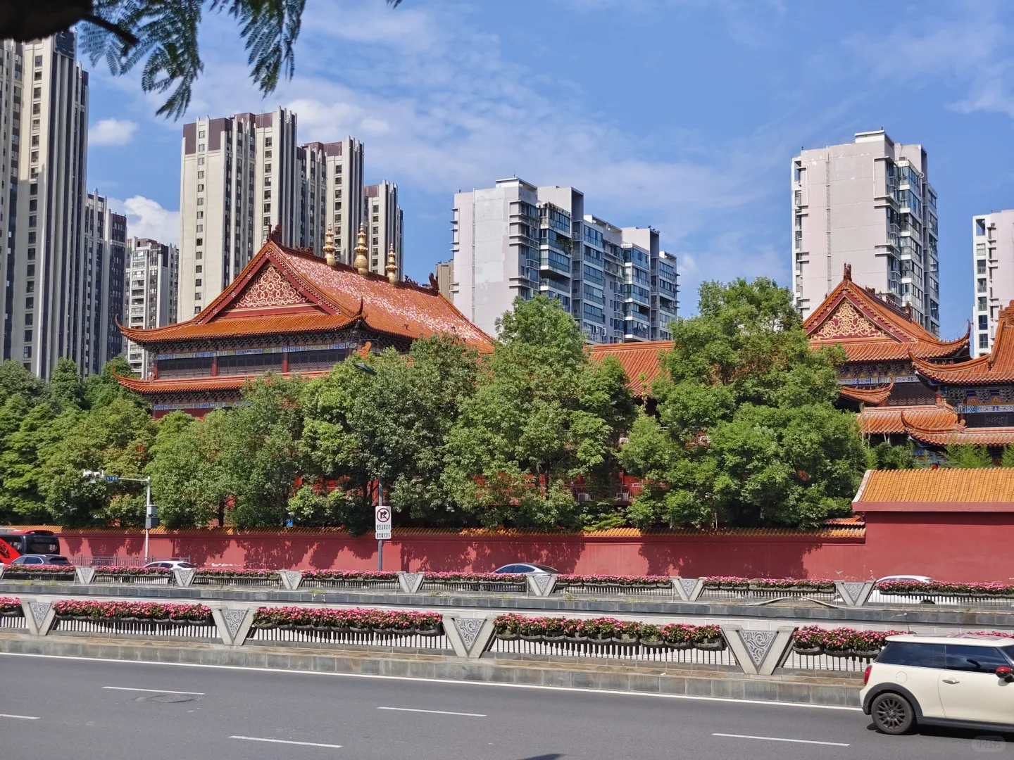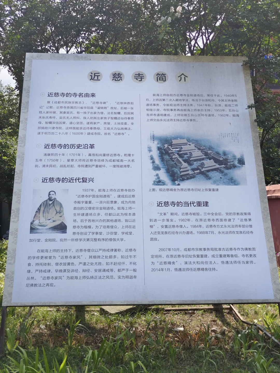 [吧唧R]每次路过锦城湖边的剑南大道,总会看见一组崭新的仿古建筑。这回去探访了一下,原来是近慈寺,过去属于华阳县,创于明万历年间,清代重建,民国吸收了密宗思想成为金刚道场,50多年前被毁,80年代僧众迁往龙泉驿石经寺,2007年开始在旧址重建近慈寺,2014年竣工开放。 [吧唧R]寺庙基本没有设计,重复堆砌,只追求单体建筑宏大,空间关系和环境营造毫无考虑。与效果图相比,山门没有建成,中轴线上依次为观音殿、大雄宝殿、藏经楼,门前环境荒芜破败,与里面光鲜的殿宇对比强烈。寺内不见香火,只有殿里一众女性,跟着和尚呆呆地念经,别无一丝生气。 [吧唧R]在高新区这个超尺度的街道、超尺度的公园、超尺度的现代建筑之间,不知这样一所文脉已断的土味寺庙要如何生存。