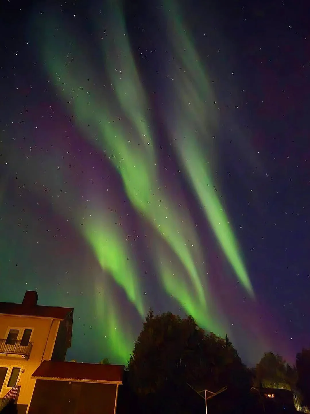 在瑞典北部拉普兰地区,8月29日-31日两天,极光大爆发,是我们民宿酒店客人发来的照片,真太幸运了!秋天还没到,就看到了这么大强度的极光!! 我的民宿酒店🏡在瑞典北部一个小镇 Pjesker,距离北极圈不到一百公里,在之前的笔记有写。 所以追极光的同学,不用非要冬天去,不用非要去冰岛[笑哭R] 会观测的童鞋周周都能看到极光。在瑞典北部 纯净的拉普兰,人迹罕至,极光下的瑞典小木屋显得格外童话~