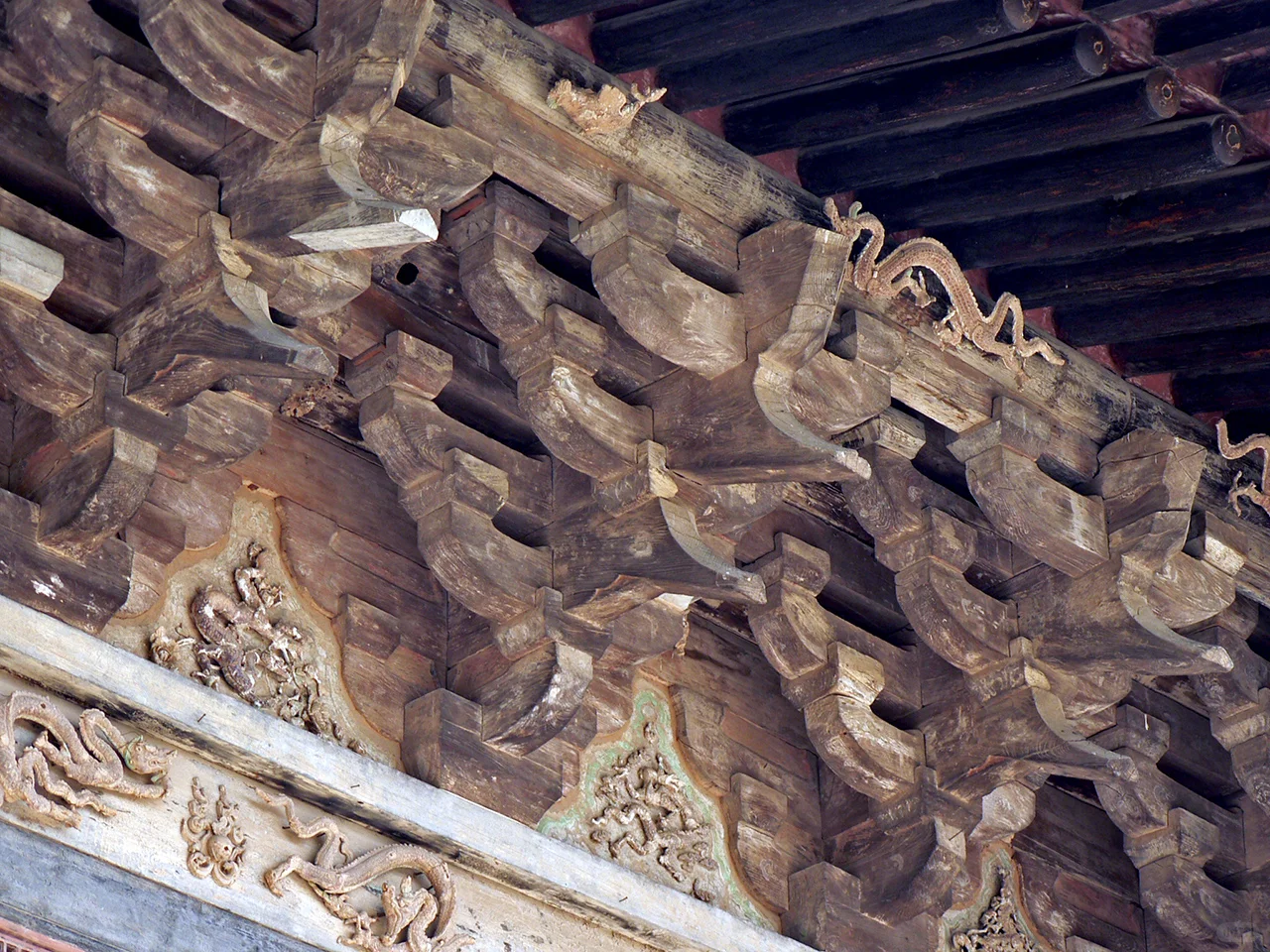 大木、小木、砖细、琉璃、丹青、泥塑、碑刻无不精妙,这还是搬迁过的,连无极殿那些细碎的悬塑都能完整搬过来,着实不易。