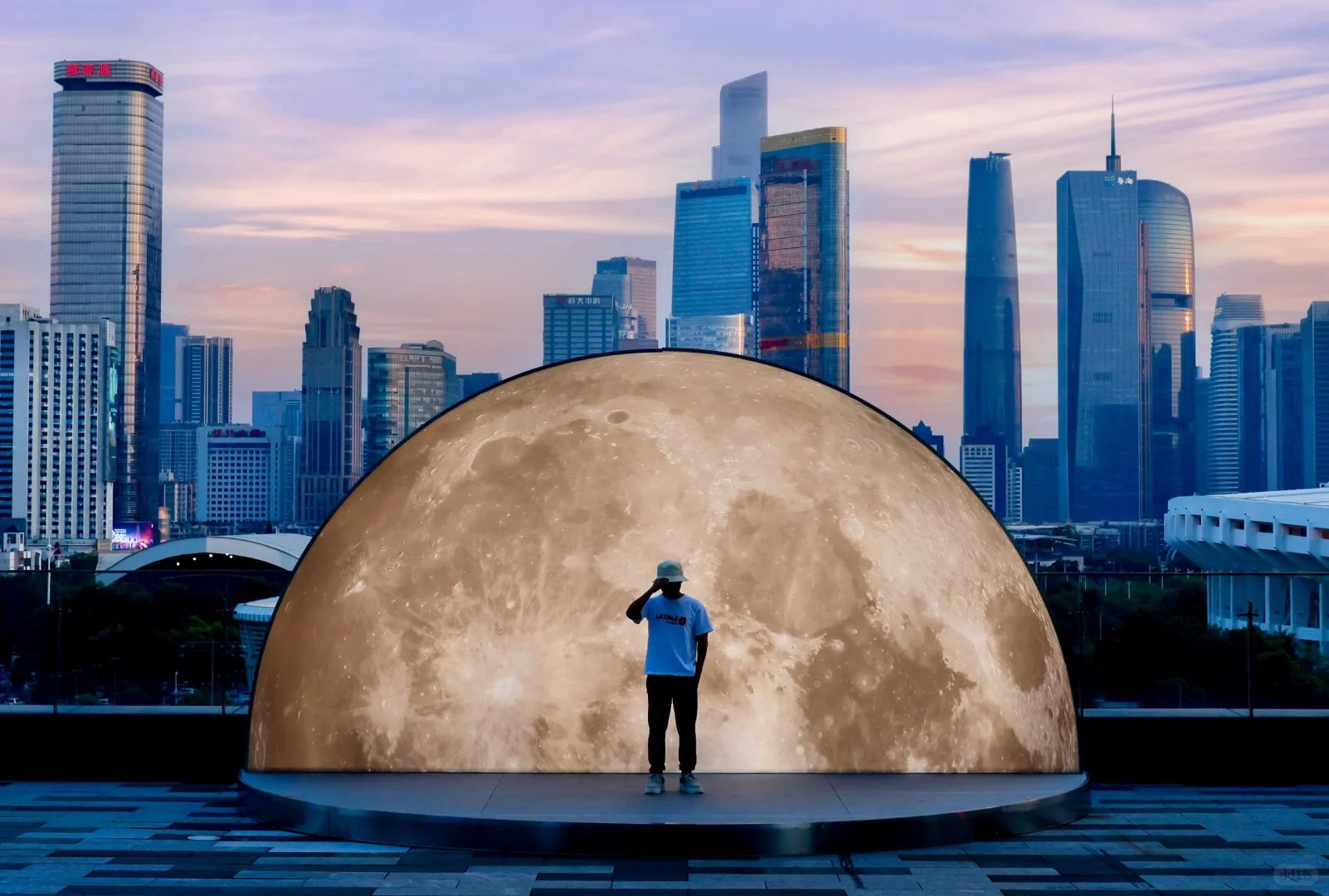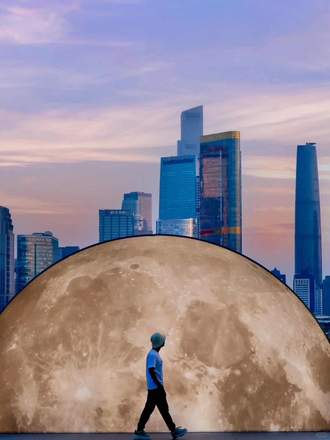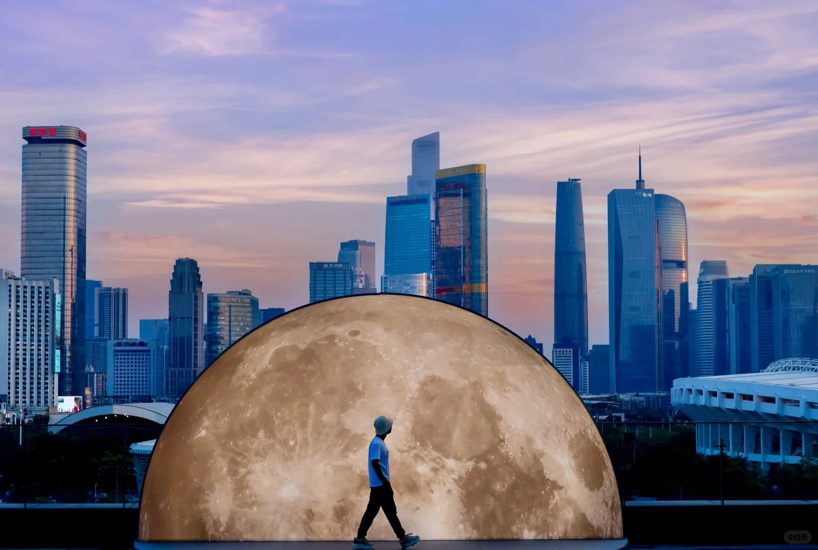 中秋又一个新晋打卡点!🤩 这个天台有大月亮! 看着是不是跟某界面有点熟悉,哈 月亮跟cbd同框,拍出未来科幻城市即视感 拍照tips: 下午6-7点,日落和蓝调时刻更有未来城市感 1楼的天空海街区也好美😍 地点:广州环贸天地7楼 免费 最近地铁站:林和西D口