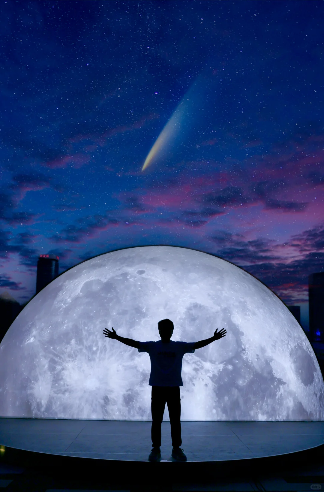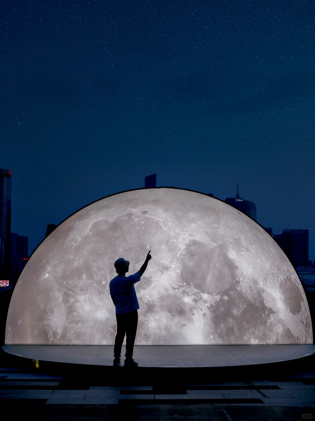 中秋新晋打卡地!天台大月亮拍出科幻城市感