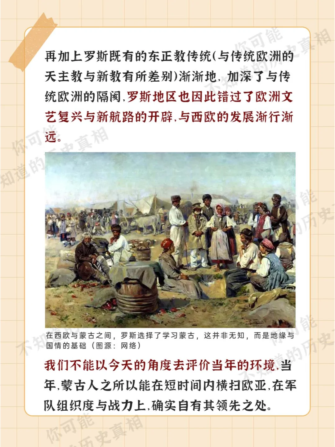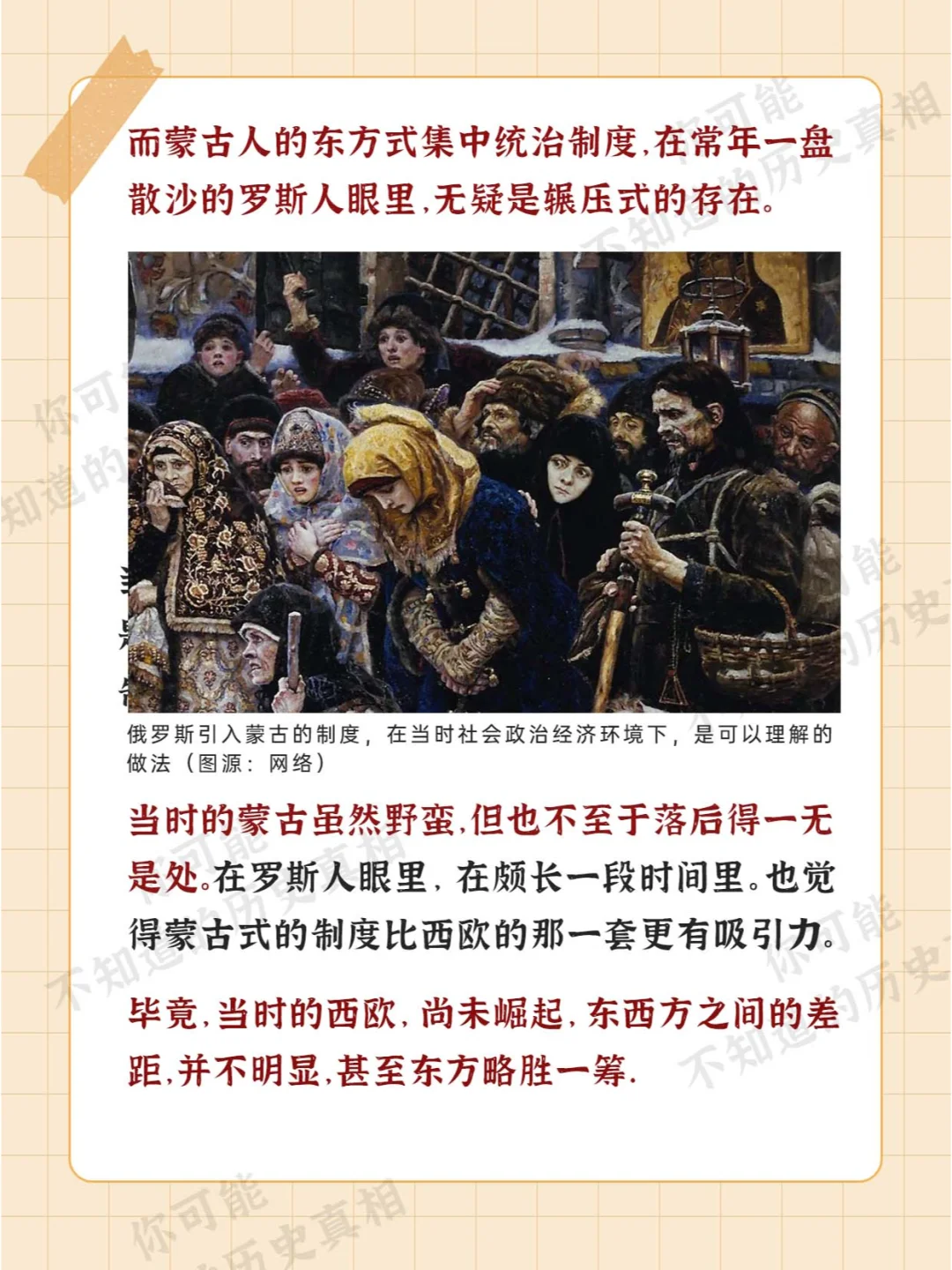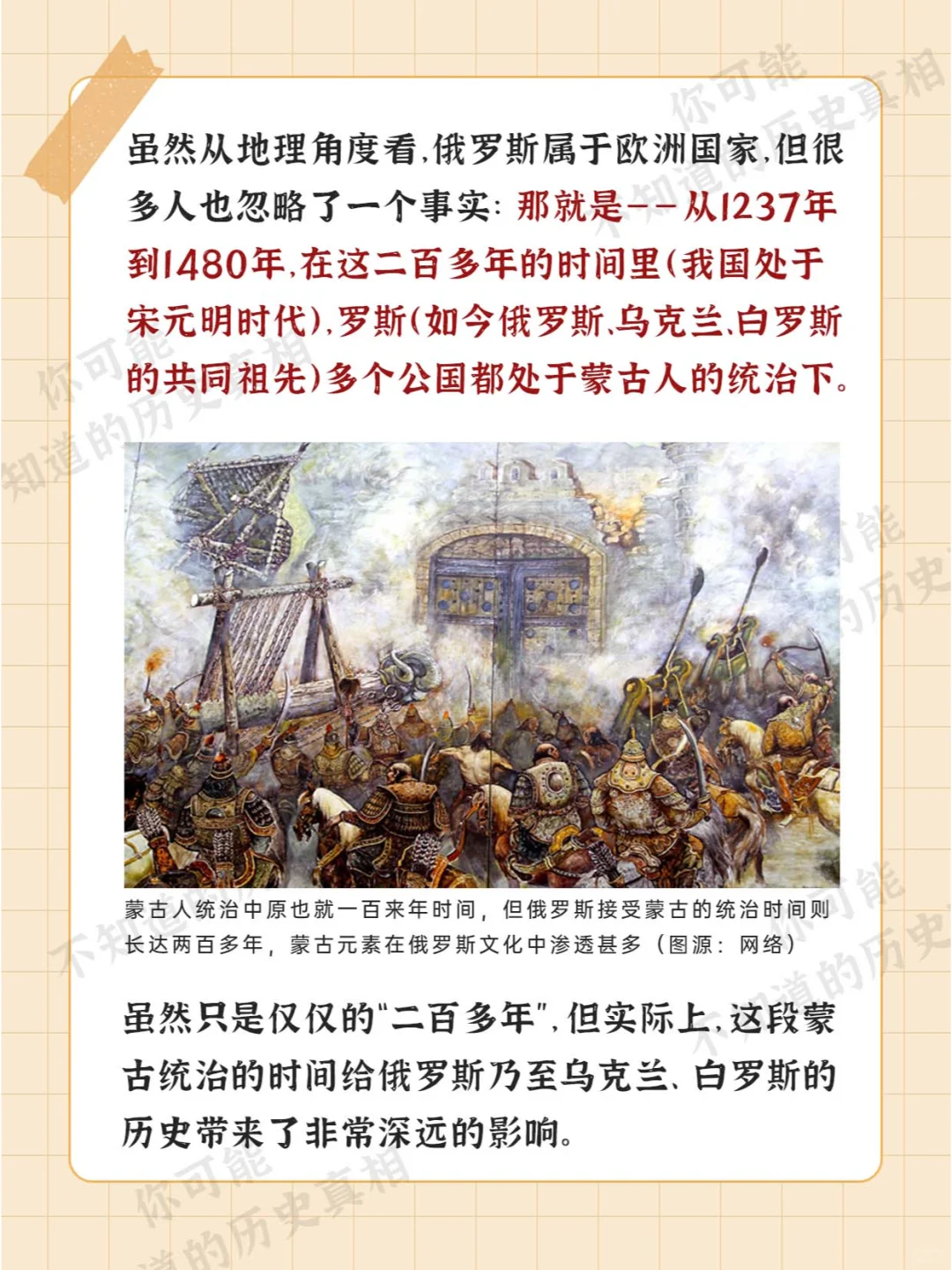 [微笑R][微笑R][微笑R] 你没看错 俄罗斯 在历史上 确实是蒙古的好学生 [萌萌哒R][萌萌哒R][萌萌哒R] 而许多人也忽视了 在俄罗斯崛起的过程中 蒙古元素起到了不小的作用 [举手R][举手R][举手R]