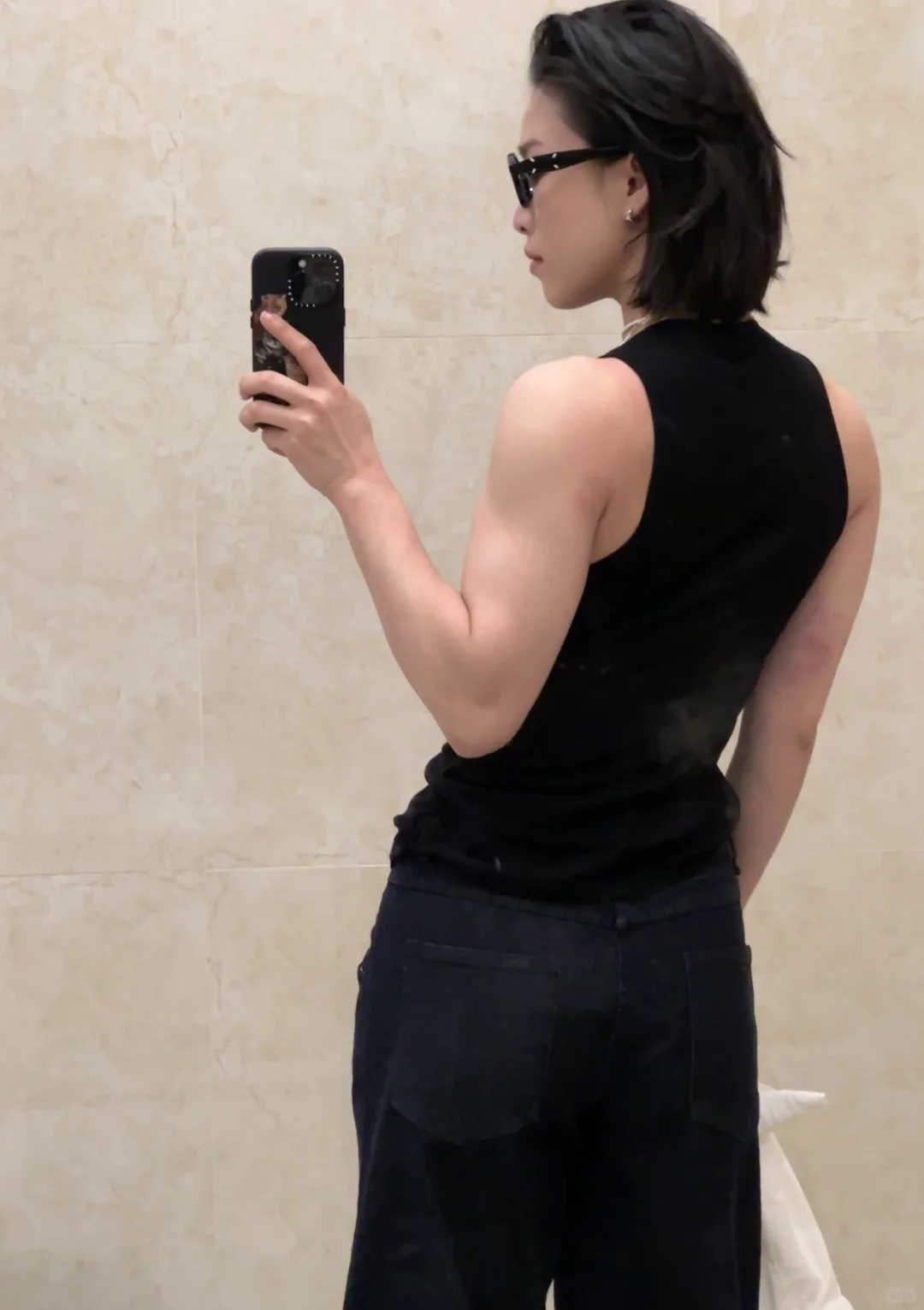 吴艳妮在成都穿着短裤大腿看起来很粗壮,表情自信又张扬