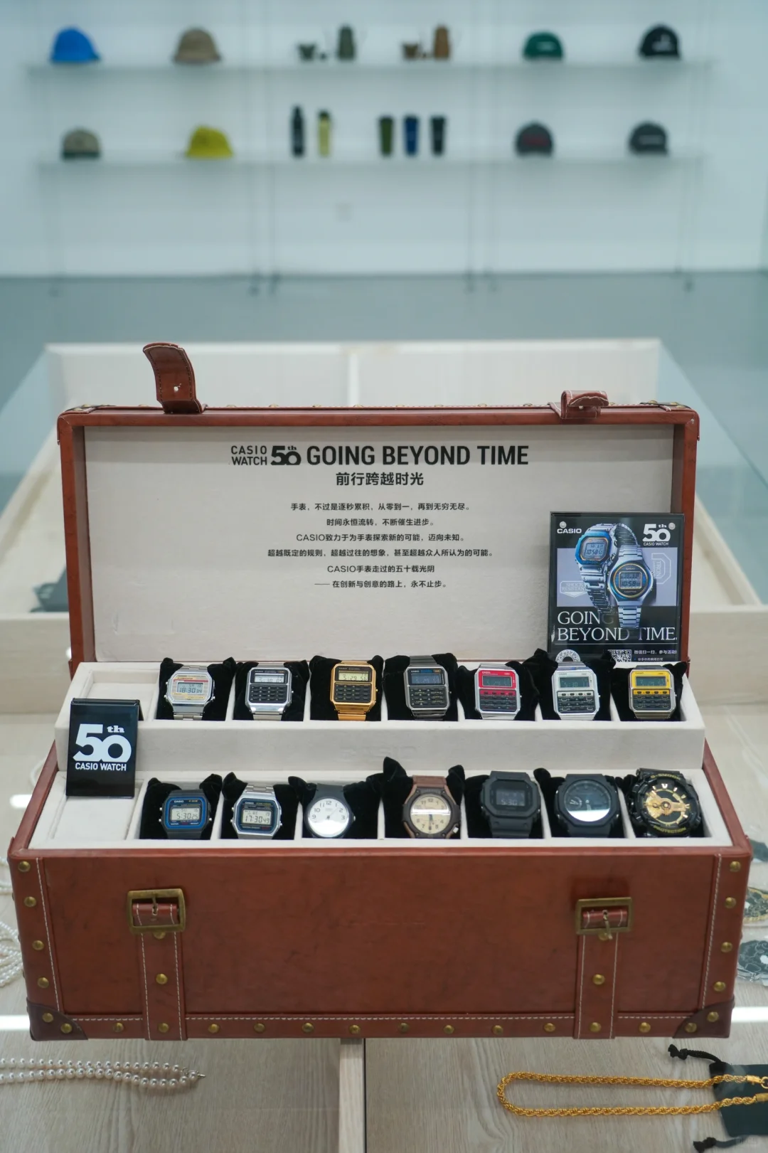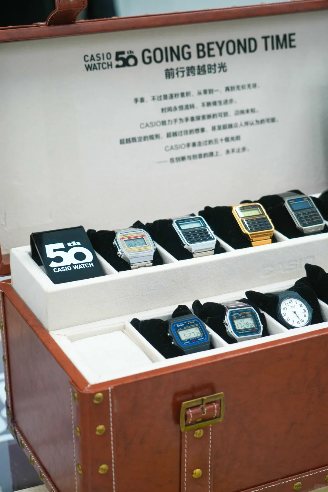 50年来,CASIO 手表始终在创新与创意的路上,不断前行跨越时光,一皮箱的手表就像开启了50年的回忆,囊括了复古复刻和经典新款,就像皮箱上写的“GoingBeyondTime”,手表就是逐秒累积,从零到一,再到无穷无尽,时间永恒流转,不断催生进步,期待下一个50年