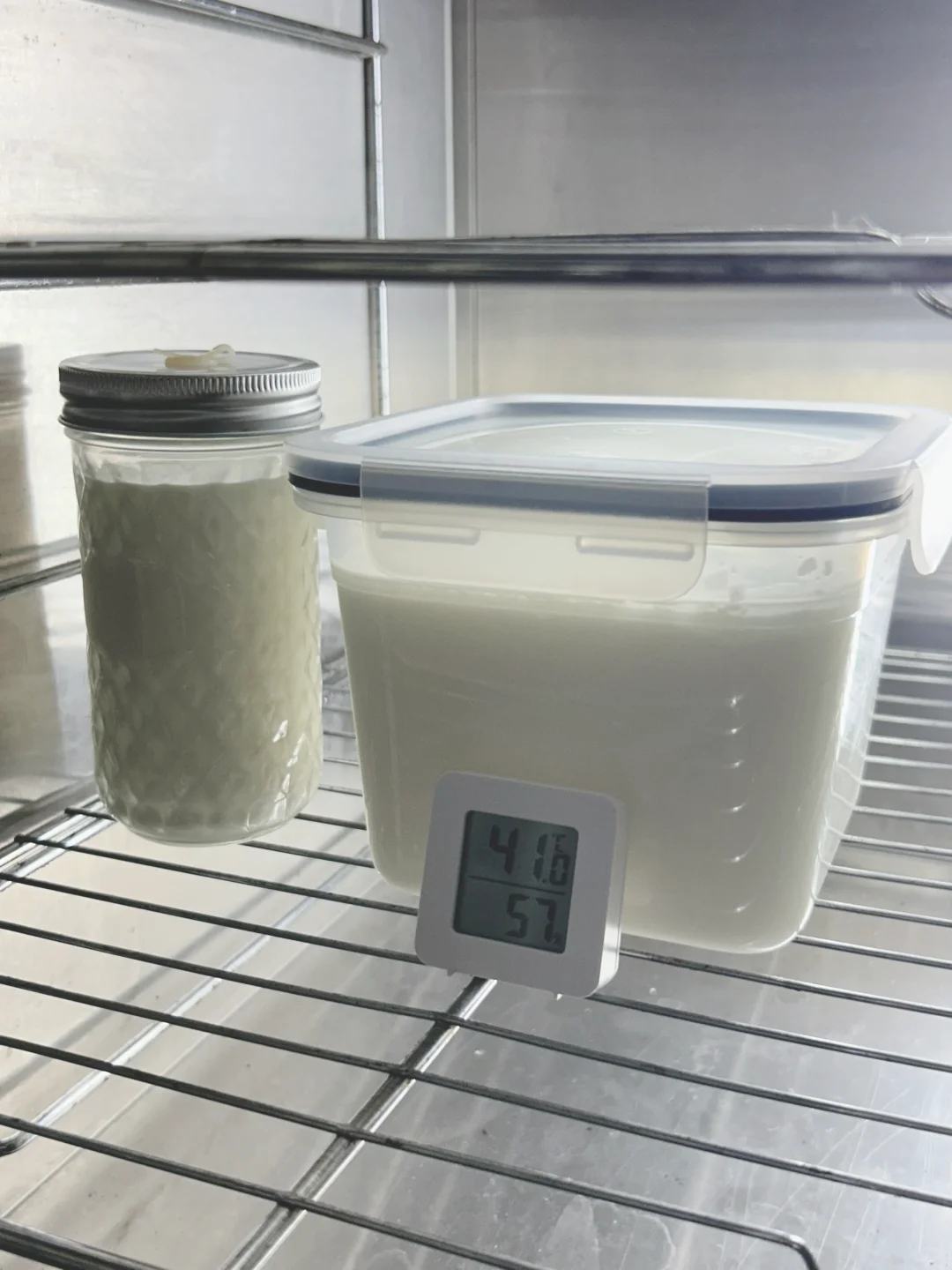 周末想吃希腊酸奶~ 想到冰箱里还有包5年陈的乳酸菌种~ 于是,买了桶1.5L装的本地品牌巴氏消毒鲜奶回来。。。。。。。。 1、拧开瓶盖,倒出来一杯自己喝,空出来200ml左右的空间; 2、把乳酸菌种从冰箱里拿出来,倒进牛奶桶,提供个微生物生力军; 3、打开一小盒淡奶油到了进去,给酸奶增加一些油脂,以改善口感; 4、看看还有些空间,就又加了两勺白糖进去,给乳酸菌一些启动的能量; 5、摇晃均匀,为了吃起来方便,分别倒入两个容器,保鲜盒和玻璃罐。 6、扔到阳台上去,让它们暖和暖和,升升温,一个下午过去了; 7、晚饭后,室外温度下来了,就拿进来放进发酵箱,40-45℃,最适宜乳酸菌生长; 8、一夜无话,早上发现,酸奶成了,倒瓶不流。 9、放入冰箱,冷藏降温,凉透了,就能吃了。 10、晚上再回来吃,发现,口感已经完全是丝滑的了,这个冷藏径直过程,乳酸菌逐渐转入休眠状态,酸奶的口感也在静静的改善, 过程很简单,讲起来罗里吧嗦,只为说清楚背后的道理,即使没有发酵箱,抓紧这最后的秋老虎,放在阳台上,最多24小时,一定可以成功。如有兴趣,不妨一试。 ———————————— 预想到会有人问: 问容器消毒了吗? 答:木有,因为我相信乳酸菌群的强大战斗力! 问放奶油会影响减肥吗? 答:我只要口感爽滑,要减肥就尽量啥都少吃。 问有糖会不会不健康? 答:抛开剂量谈毒性,都是耍流氓。