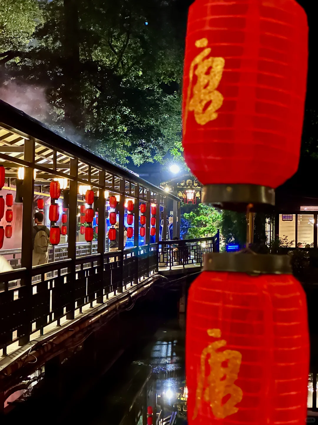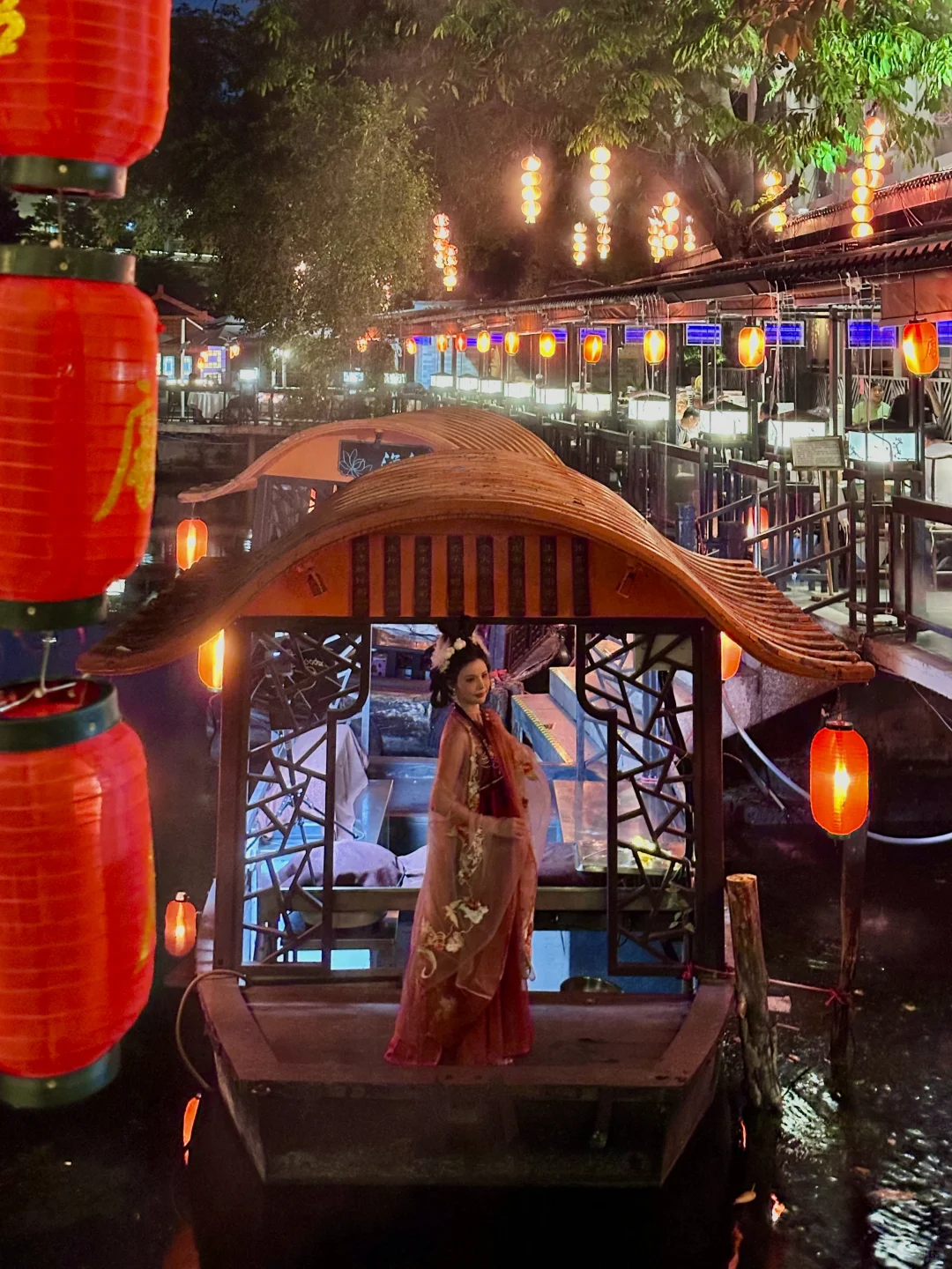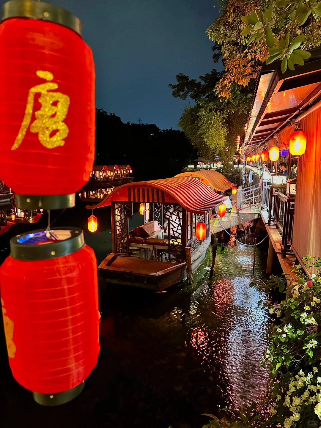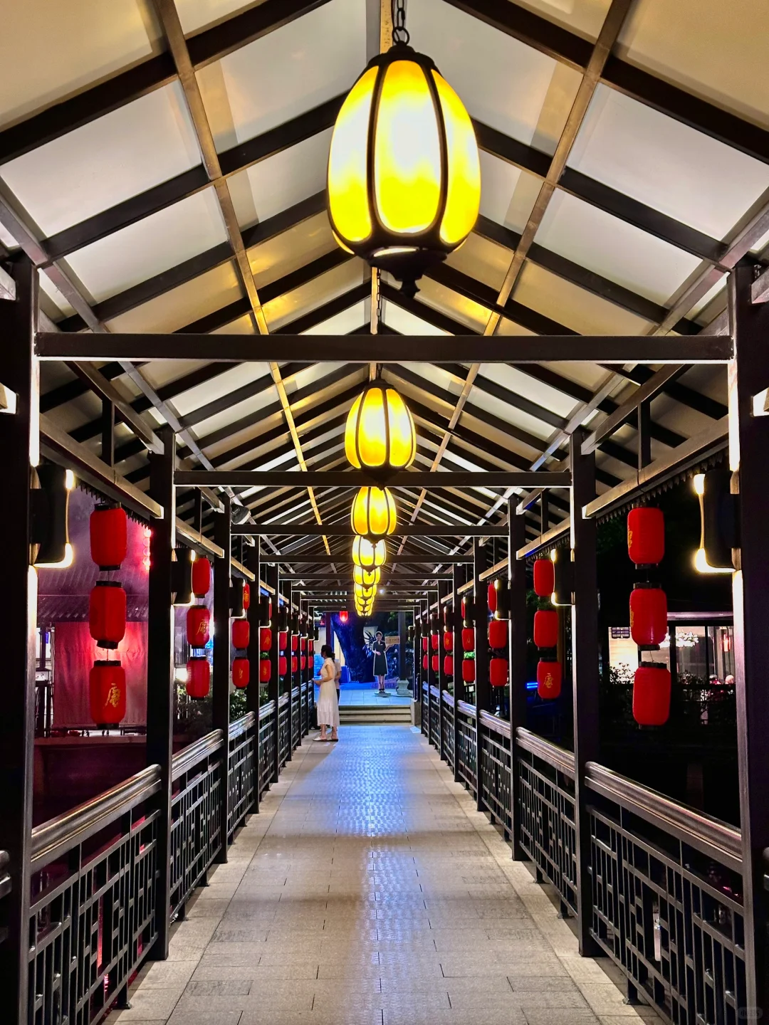 这里的木质长廊、灯笼和乌篷船很适合拍中秋主题的照片呦