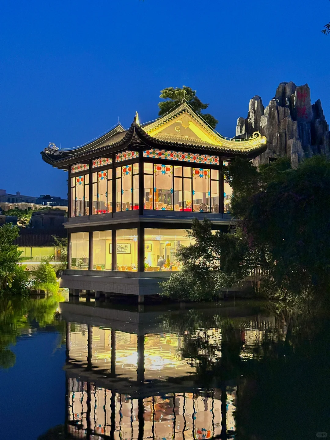 不妨晚上来这个离永庆坊不远的荔湾湖·唐荔园