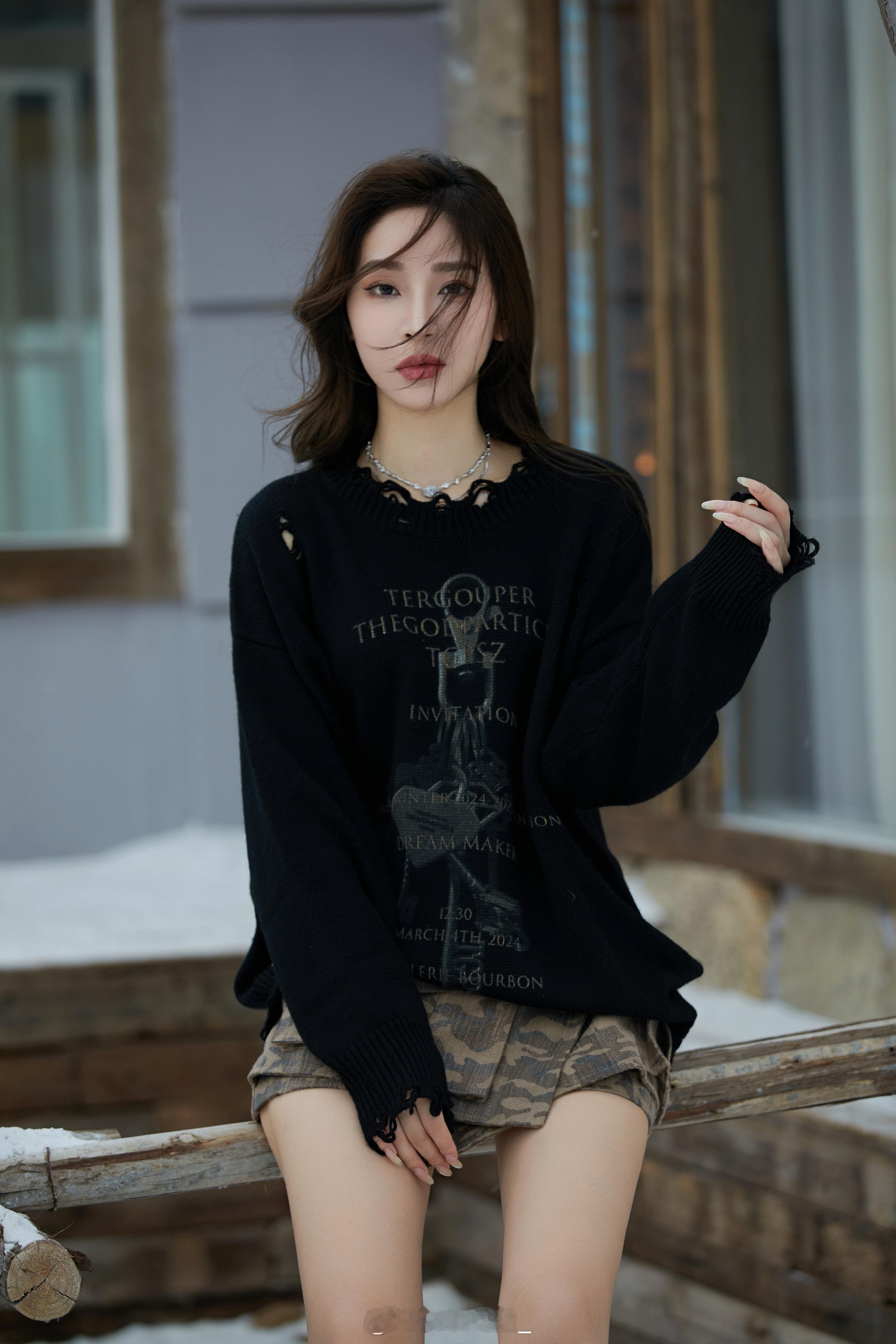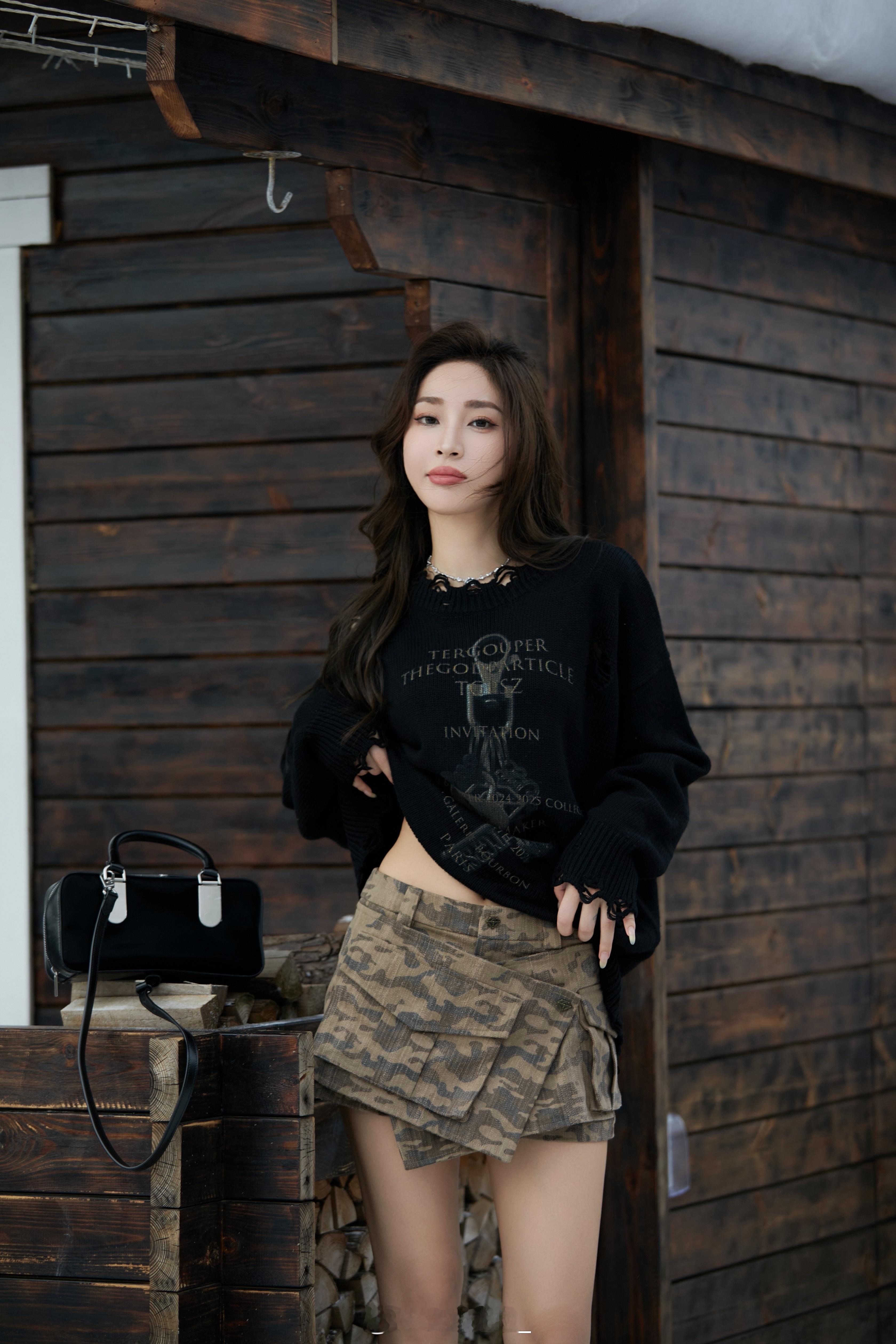 早秋毛衣穿搭指南🤎🖤🩶破碎毛边毛衣设计感满满迷彩裙裤安全感时尚度都很