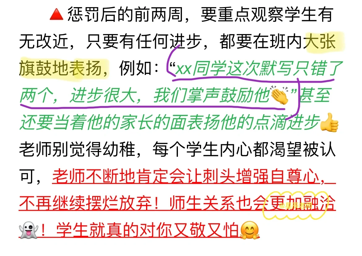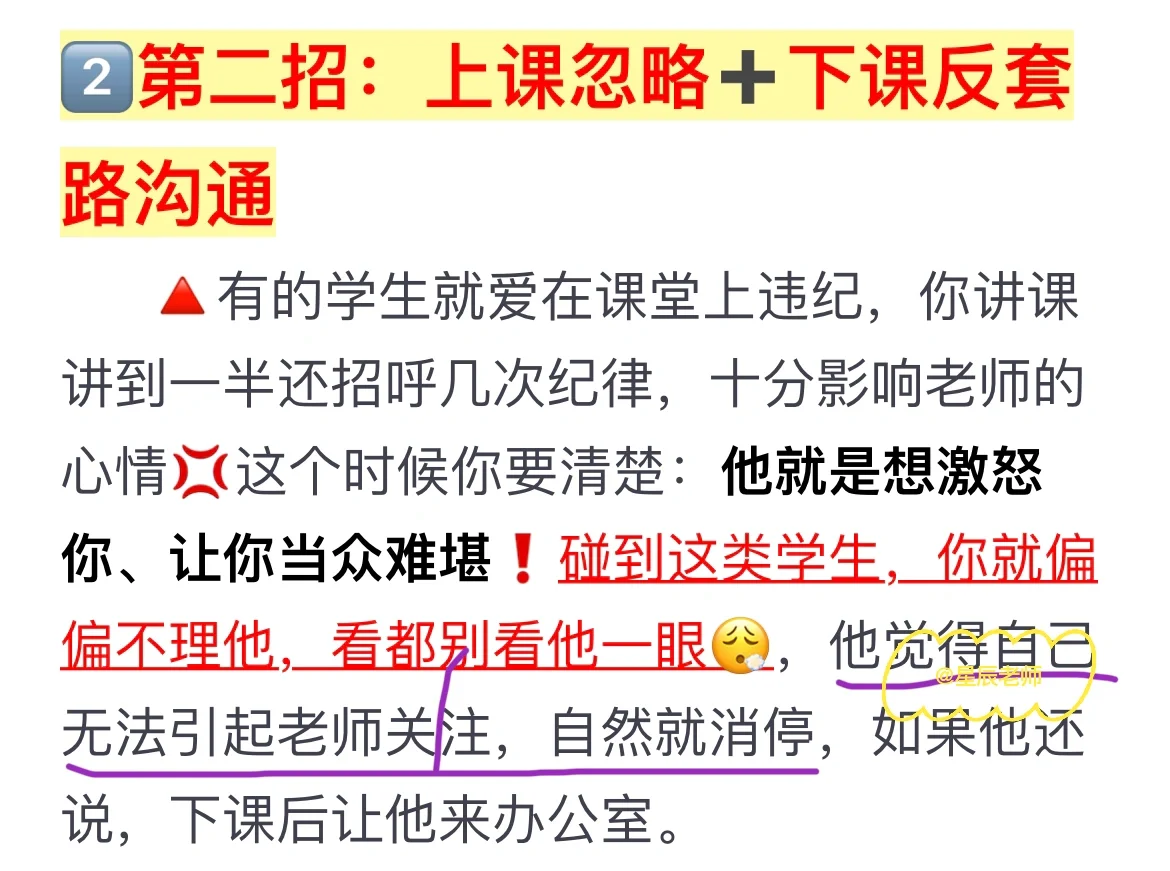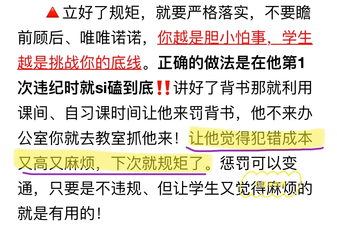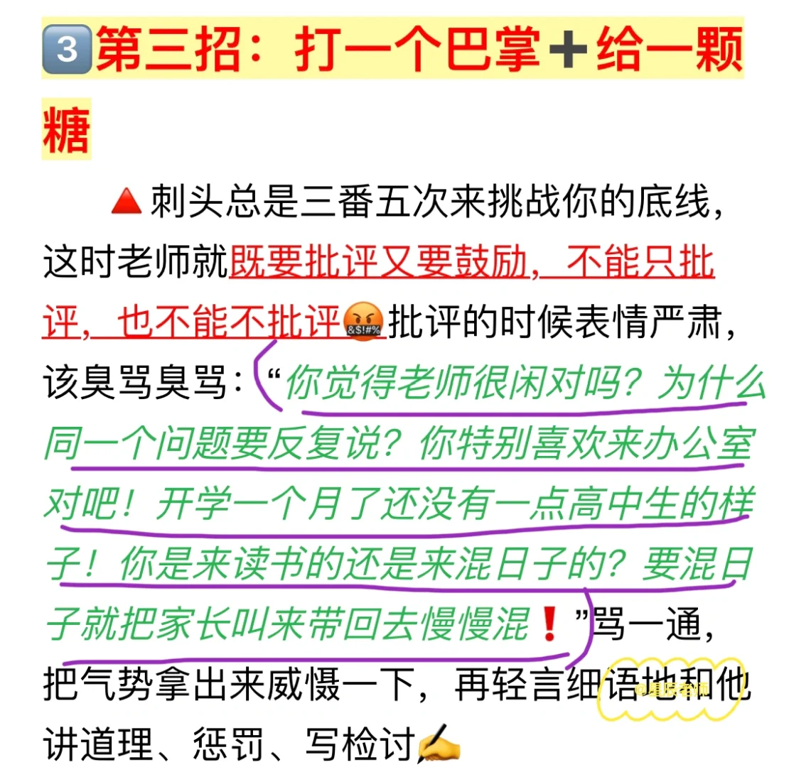 大家好,开学一段时间了,很多老师都很头疼班级学生不服从管教,这里谈谈我的一些实用的办法吧: 1⃣️第一招:立规矩➕落实惩罚 2⃣️第二招:上课忽略➕下课反套路沟通 3⃣️第三招:打一个巴掌➕给一颗糖 4⃣️第四招:多用➕多夸 详细方法和话术都在⬆️面,还有什么办法欢迎大家可以在⬇️补充哦👏