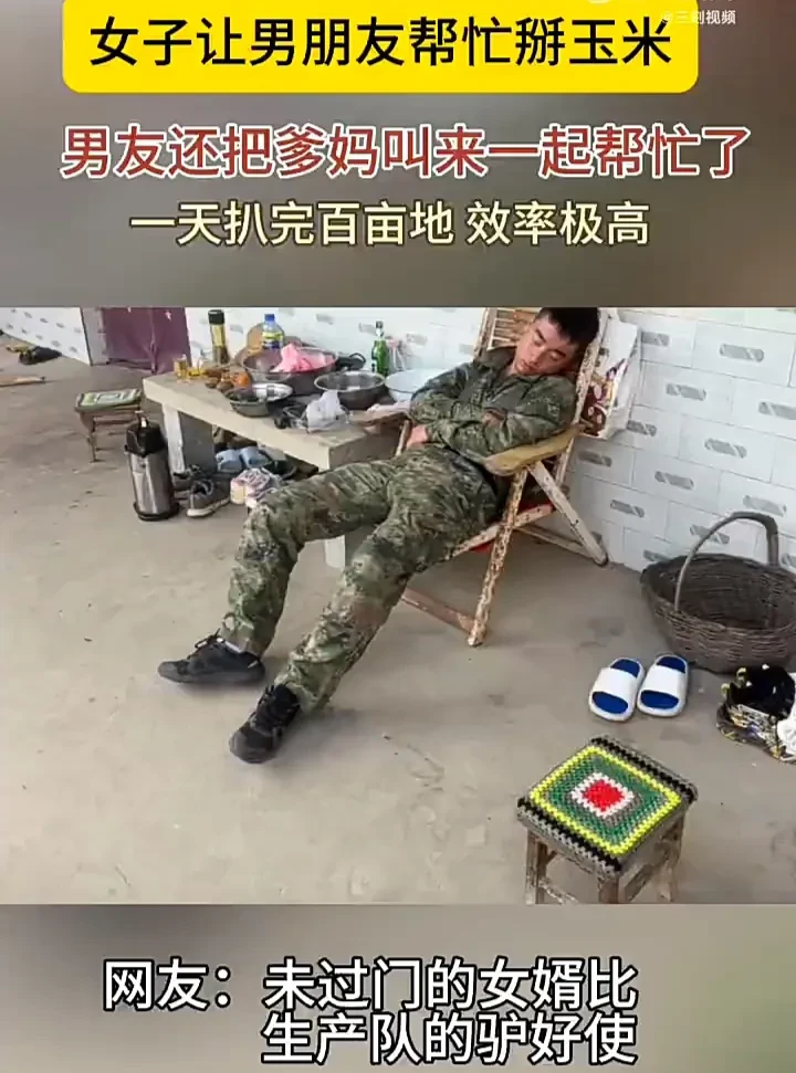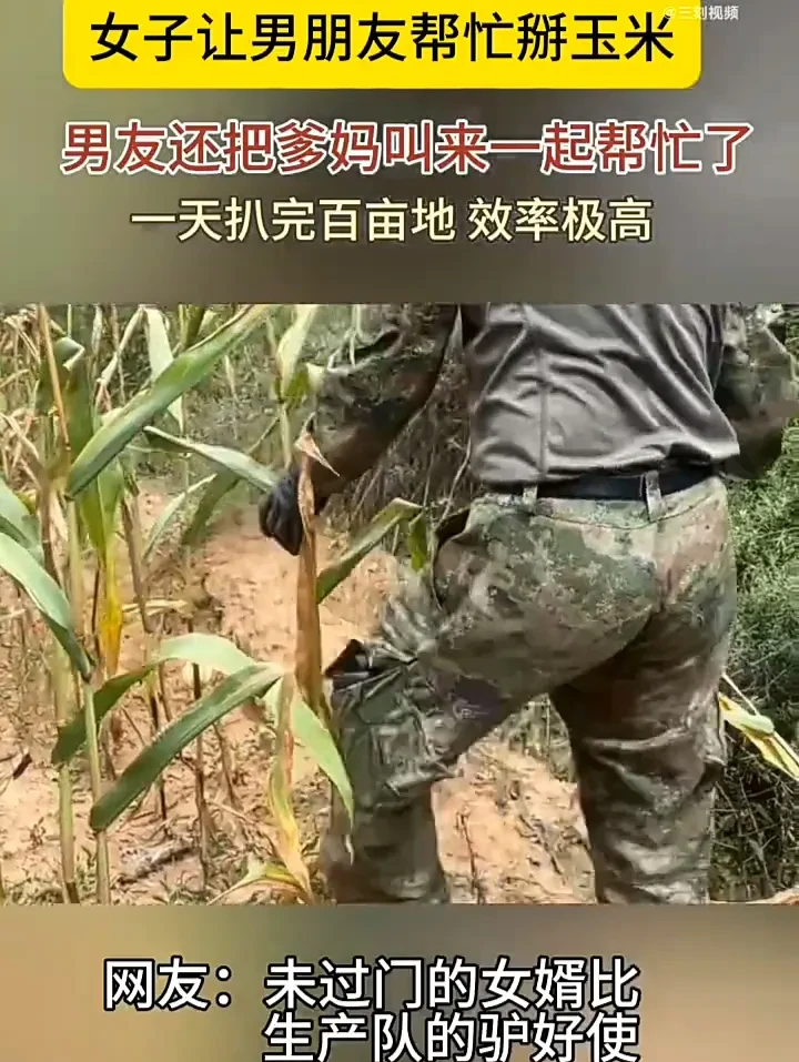 看到这位男友连爸妈也叫过去一起帮女友家掰玉米,真的感到十分有趣。女友家里的玉米大丰收,叫男友回去帮忙也无可厚非,但男友连爸妈也一并叫去,可见对女友非常地疼爱,最后虽然累得倒头就睡,但相信心里还是非常甜蜜的。大家怎么看呢?