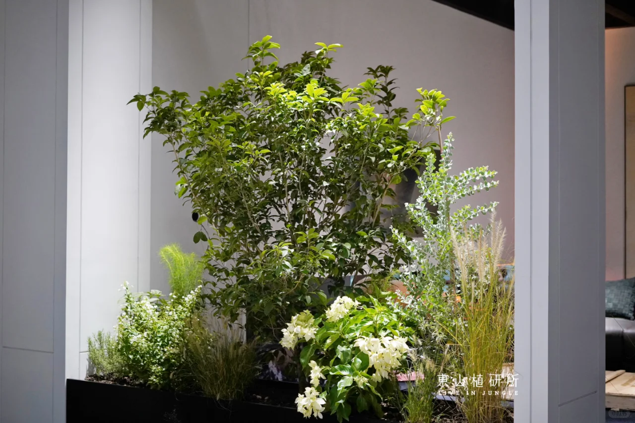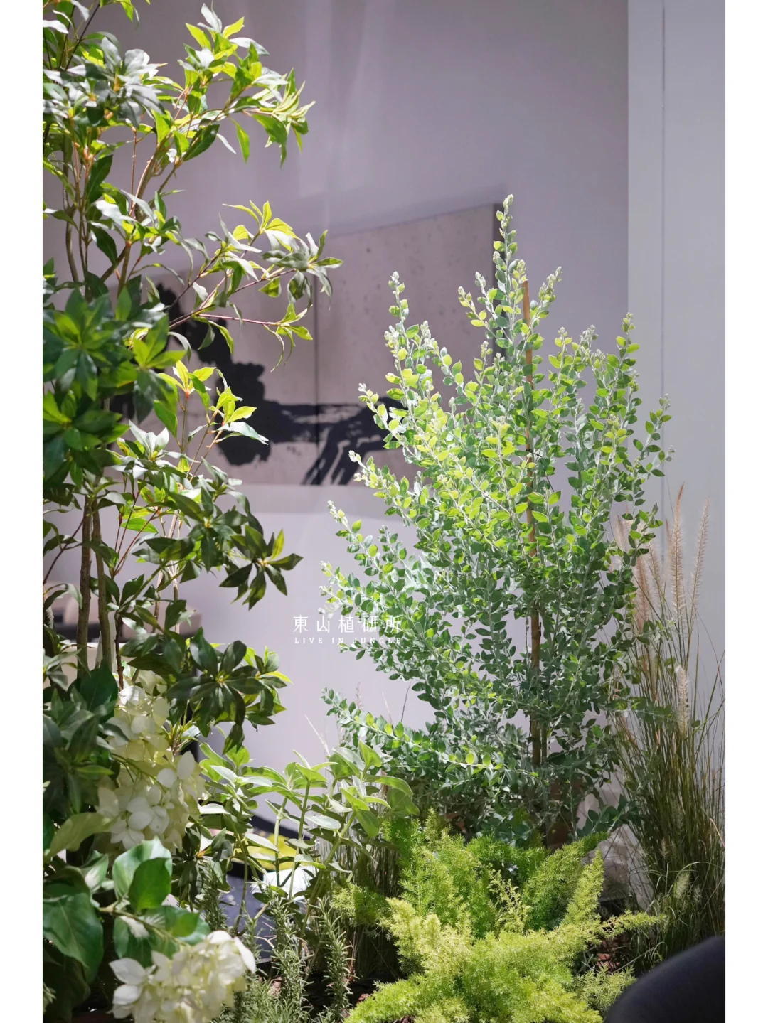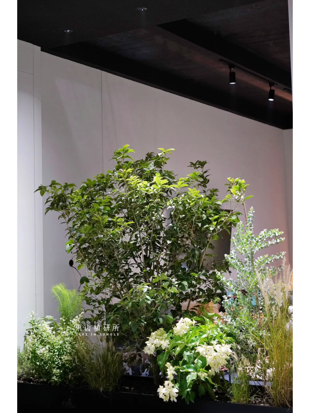 家具展厅绿植造景 通过植物搭配形成空间的小景观 不同植物的大小、形态、质感产生对比呼应, 创造出多种搭配。 灯光为植物投射出斑驳光影 为空间增添氛围 ———