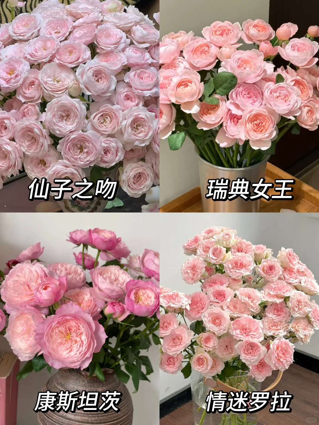 每日识花系列|一次性认识16种粉色多头玫瑰