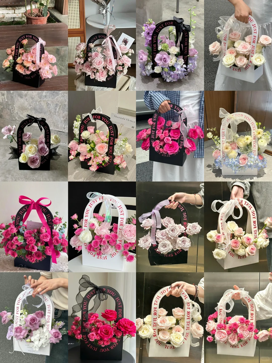 现在玫瑰个位数就能拿下一把 DIY手提花篮两位数就能搞定 玫瑰手提袋适合见面小花束、纪念日小花束;生日送对象都是很不错哒!! 学生党也可以冲!!小预算的浪漫💕 - 推荐花材 🌷弗洛伊德+苏菲宝贝 🌷洛神 🌷曼塔 🌷双鱼座+白玫瑰 🌷娜欧蜜 🌷卡布奇诺+巧克力泡泡 —— 给好朋友制造惊喜真的好幸福🌷喜欢的姐妹动手试一下吧