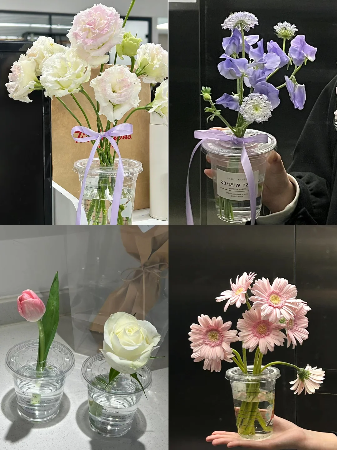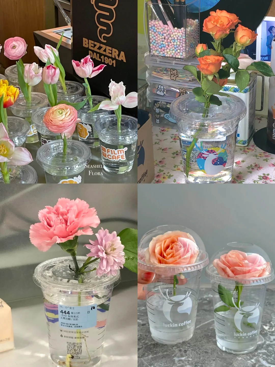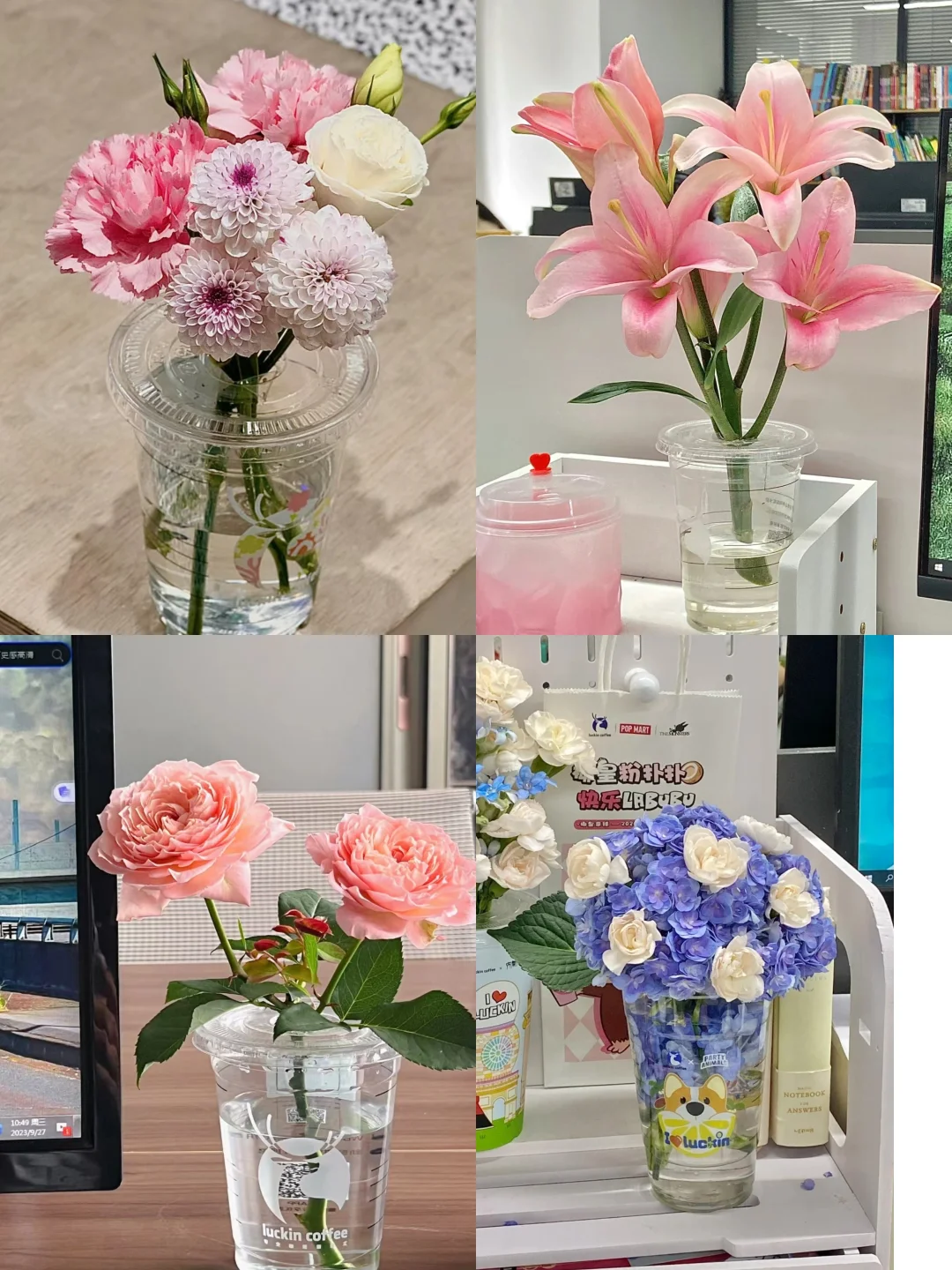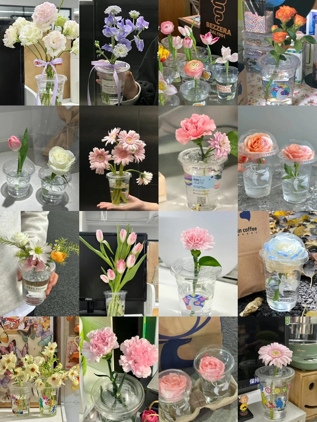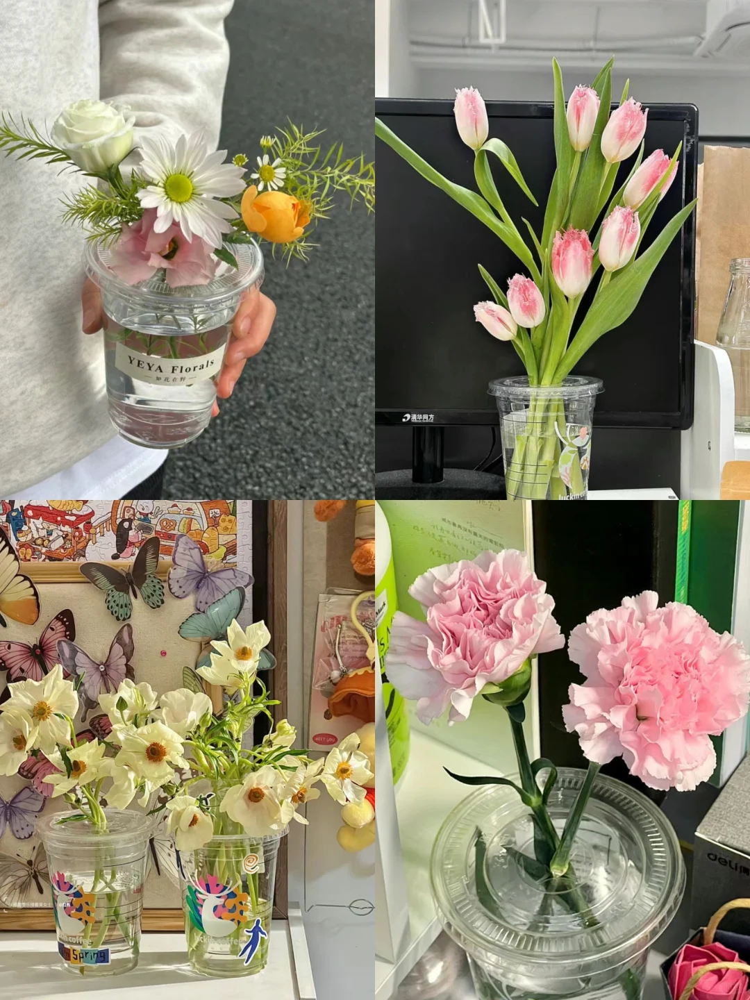 喝完的咖啡杯用来插花 适配度太高啦!!