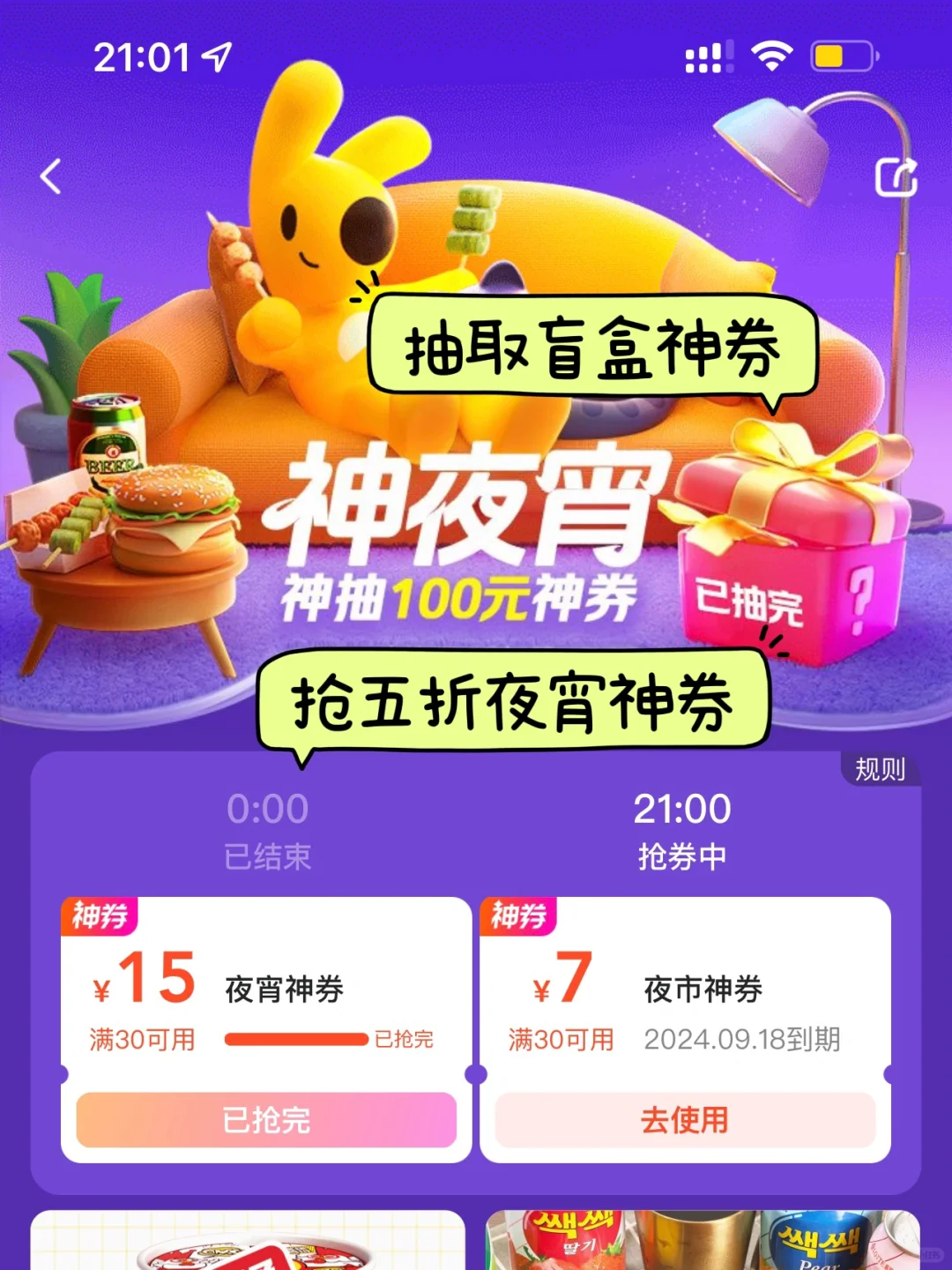 那就整点夜宵吃吃吧! 点上老婆最爱的炸鸡奶茶,然后等外卖的间隙,用空气炸锅烤了牛油,奶香味的,香香脆脆,太馋了! 为了省点奶粉钱,收藏了各种外卖省钱方法。 最近发现有个夜宵神券,9点进入美团外卖点击小月亮进入夜宵频道,或者搜索“小夜神”,进入夜宵频道,可以抢五折夜宵神券,还能开神券盲盒。 这不,今天又成功省下一顿奶粉钱。