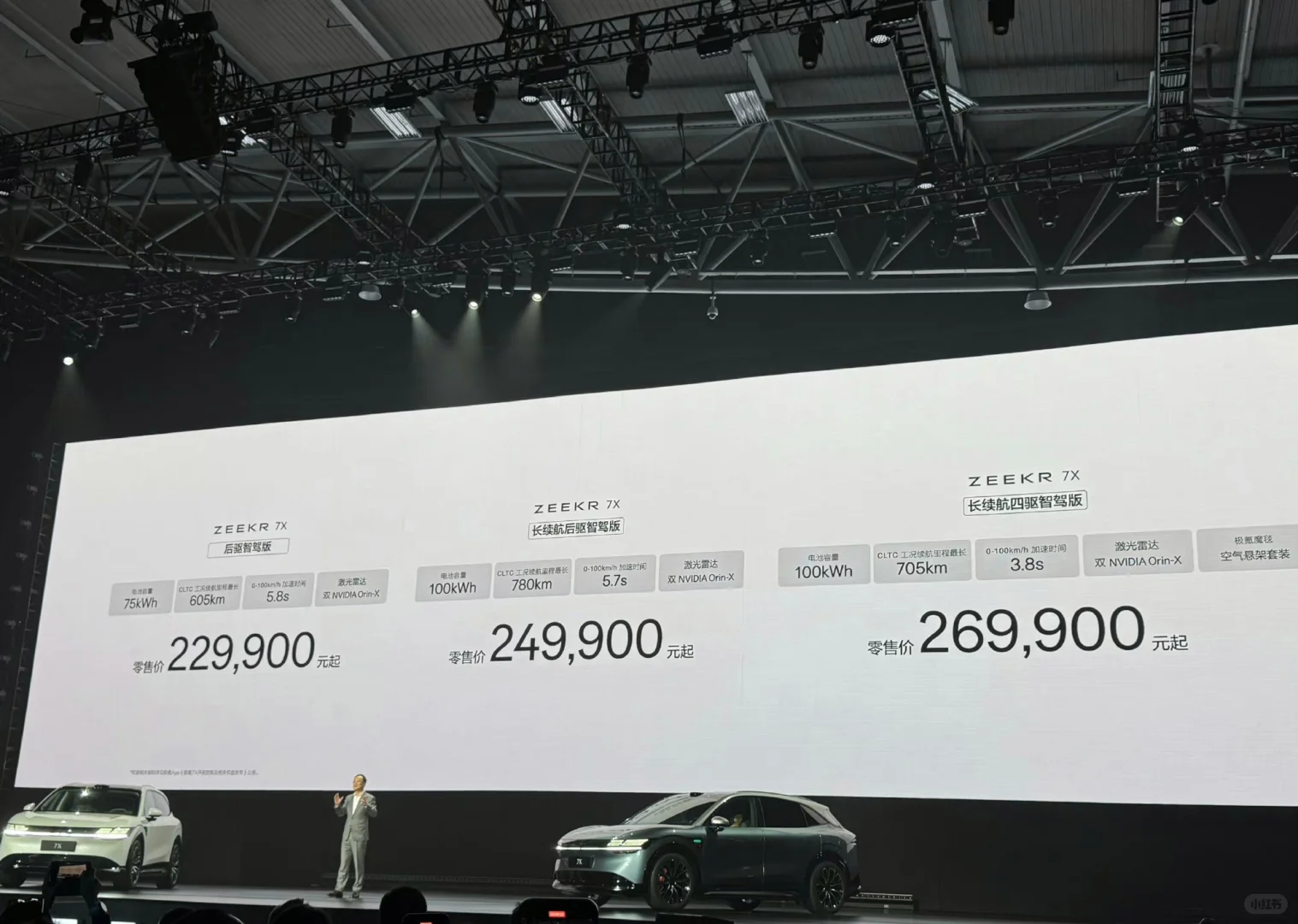极氪7X价格出来了后驱智驾:22.99万超长续航智驾:24.99万...