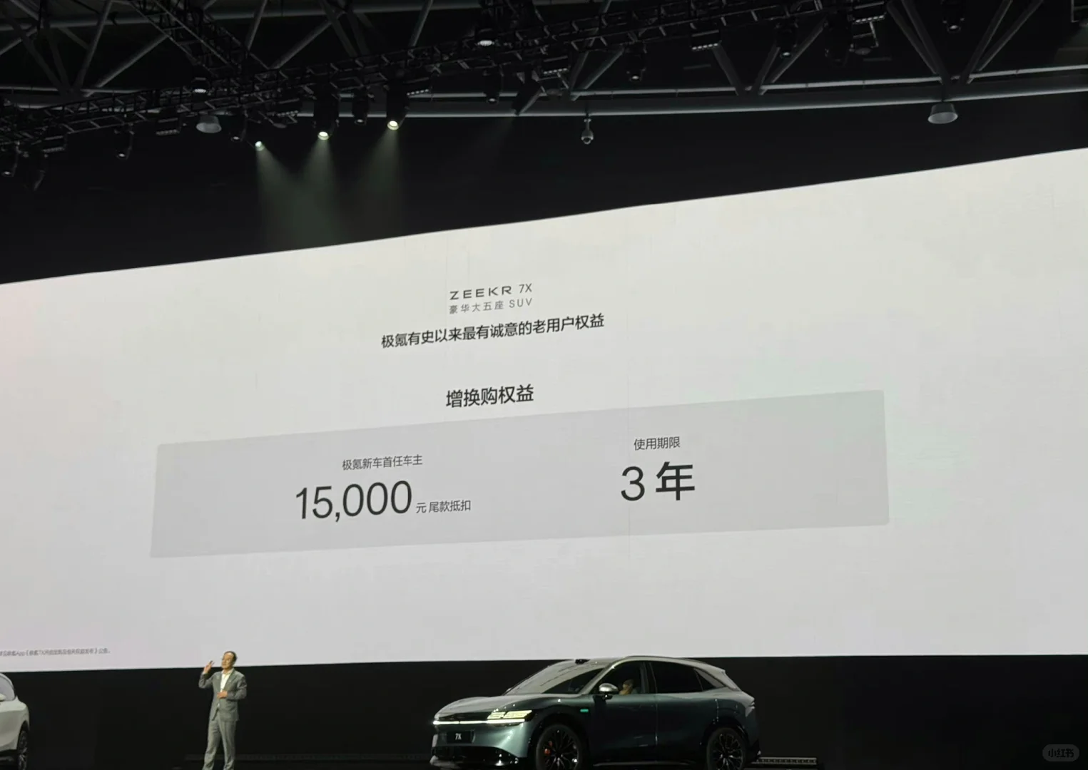 限时赠送56200的选装配置,而且所有极氪首批老车主,3年内买7X都能抵扣1.5万元的尾款
