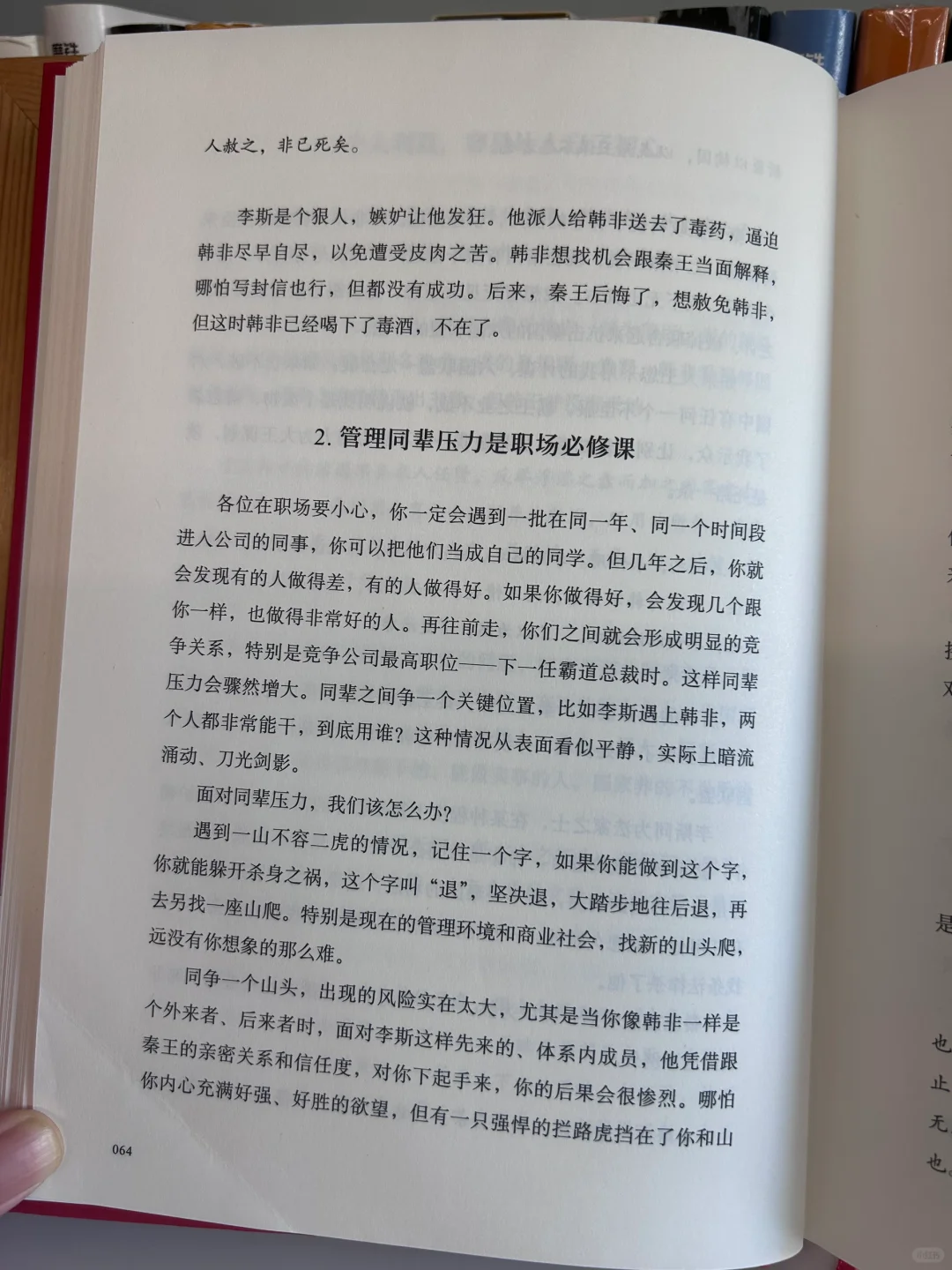 同辈之间争一个关键位置,比如李斯遇上韩非,两个人都非常能干,到底用谁?这种情况从表面看似平静,实际上暗流涌动、刀光剑影。