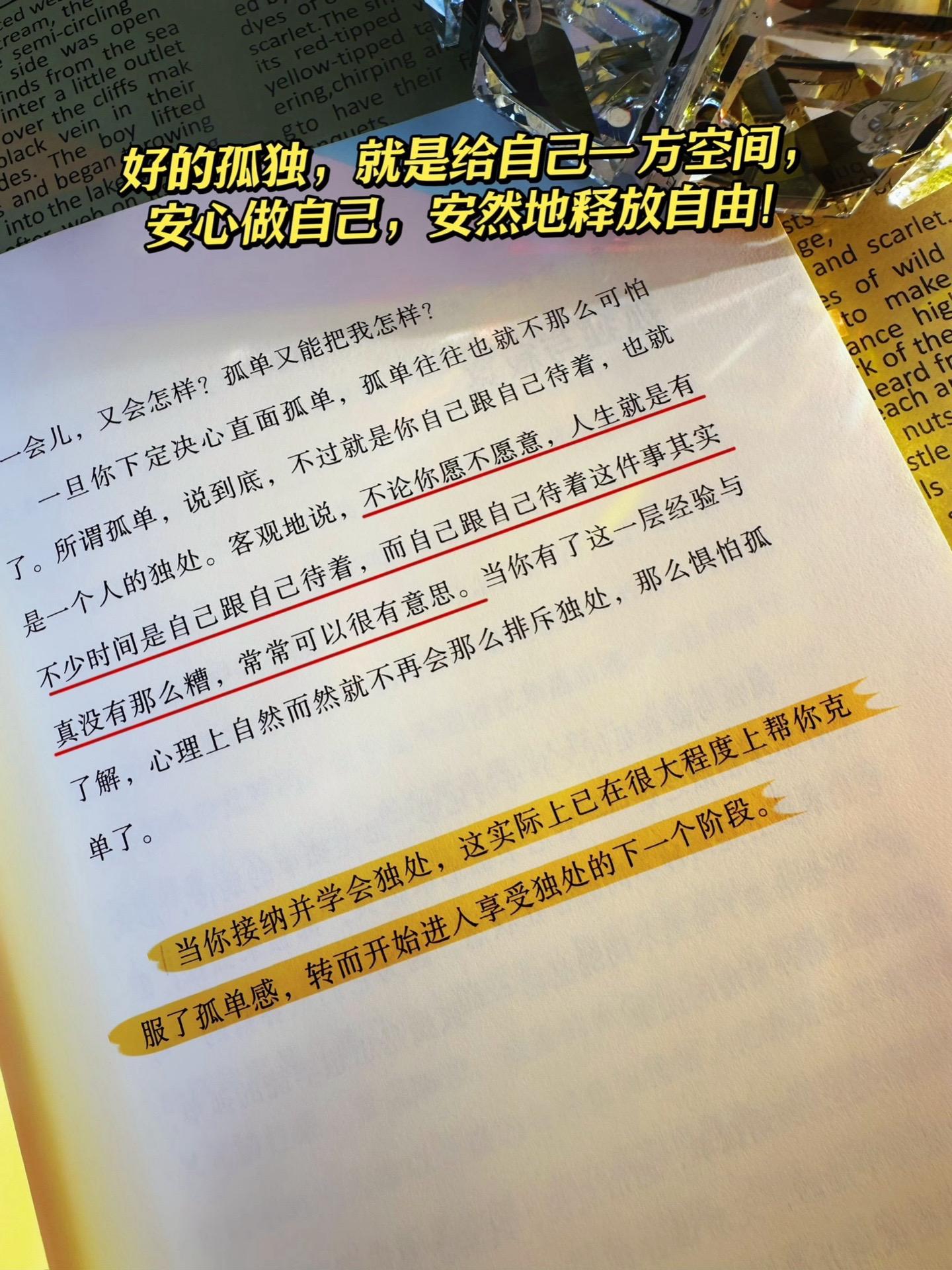 “好的孤独,是一个人心怀诚意地与自己面对面,撕掉所有标签,摘掉所有面具,放下所有的伪装与负担,就这样直面你自己,就这样做你自己”