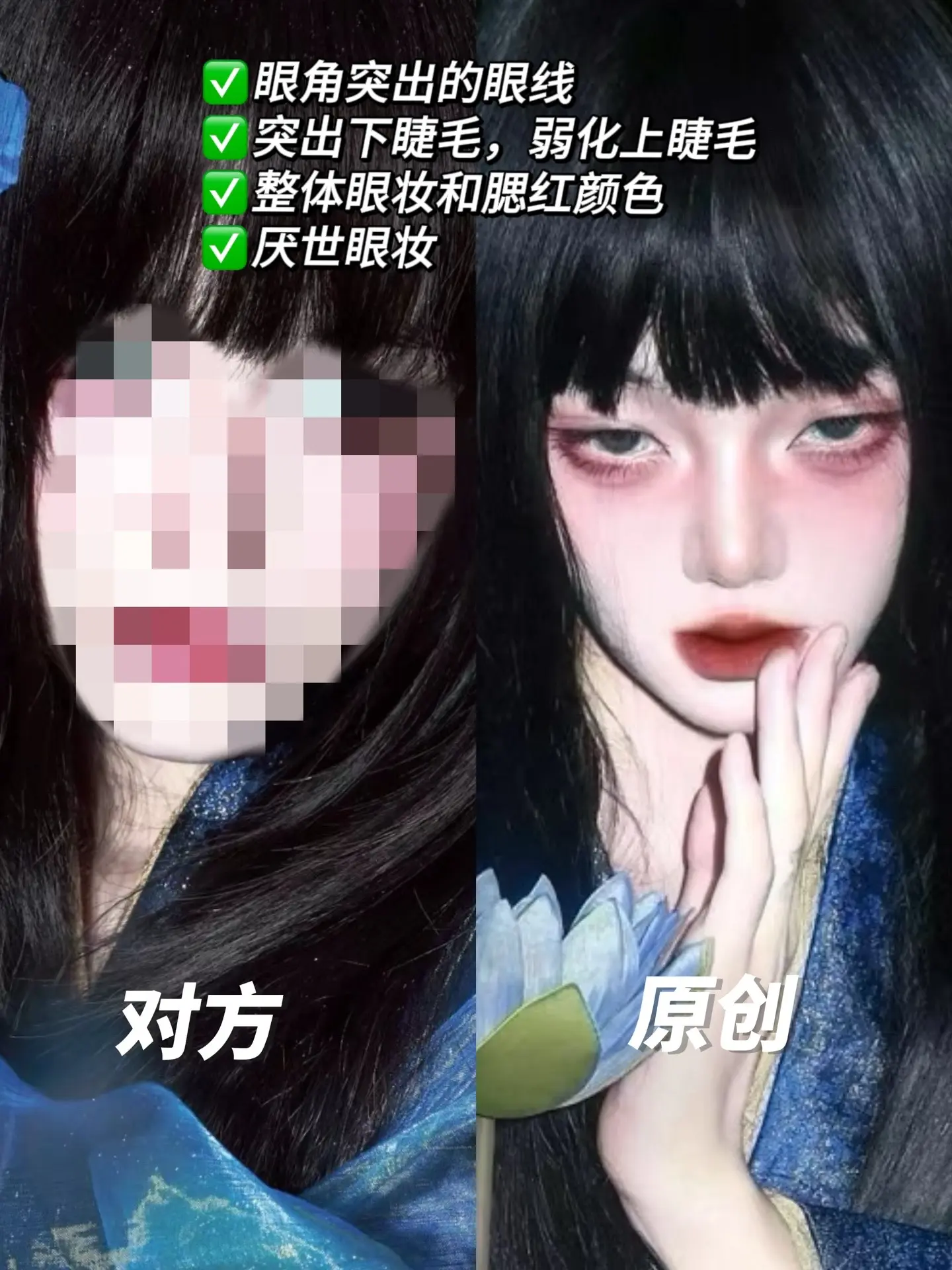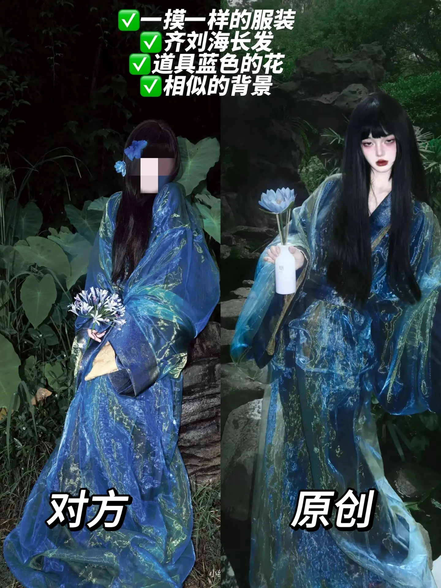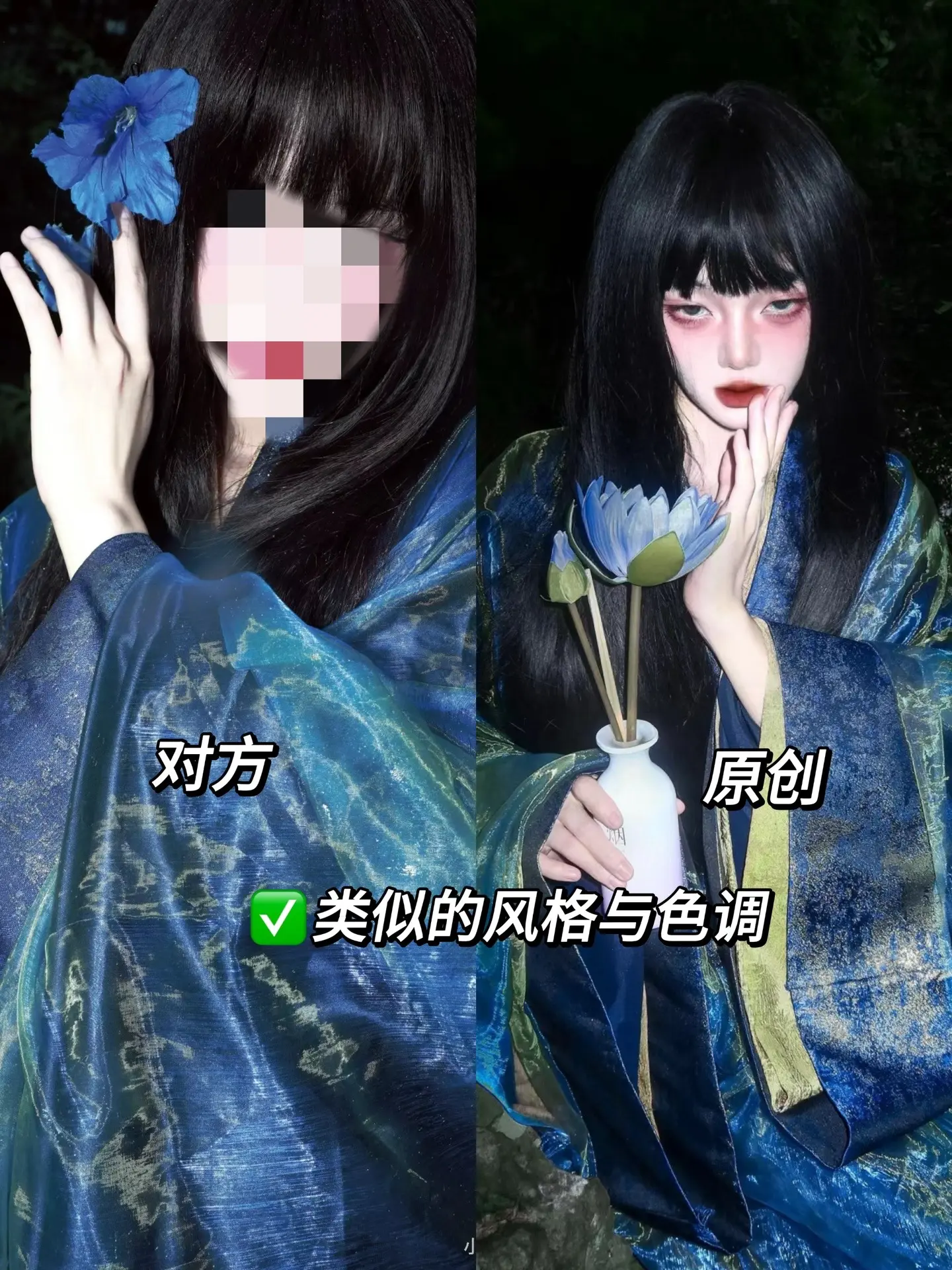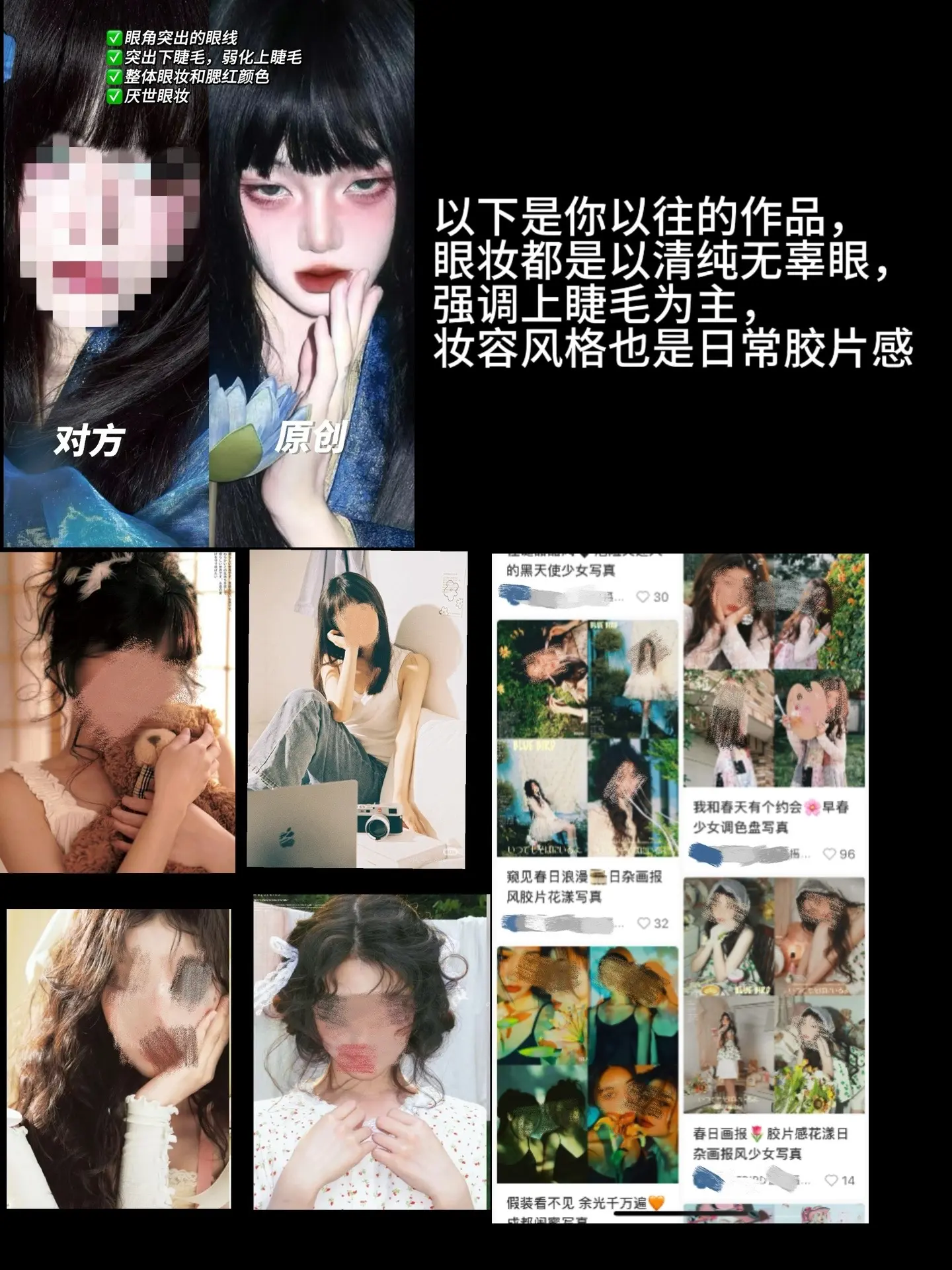 ❗️对方承认保存与借鉴我的作品,该作品拍摄道具、妆造、调色与我高度相似甚至一模一样(参考图上分析)。请问你们的想法与理念体现在哪里?换了另一种同样颜色的花,和换了个动作拍摄吗?