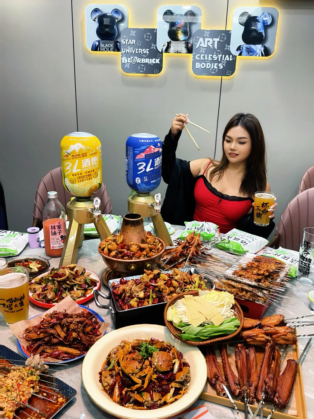 很少用震撼来形容一家烧烤店!! 品类太全啦 而且都很好吃 真的很难不爱😭 主打的就是各种蛙蛙🐸很新鲜 炭烤牛蛙是一绝 都是腿肉 又嫩又入味 牛蛙锅料很足 吃完还能涮菜 巨巨巨下饭 最惊喜的是蘸汁牛蛙 好下酒🍻 干煸鸭舌、油焖蟹、各式烧烤都很不错 还能吃到松原特色烤鹅翅 三五好友一聚 得劲儿~