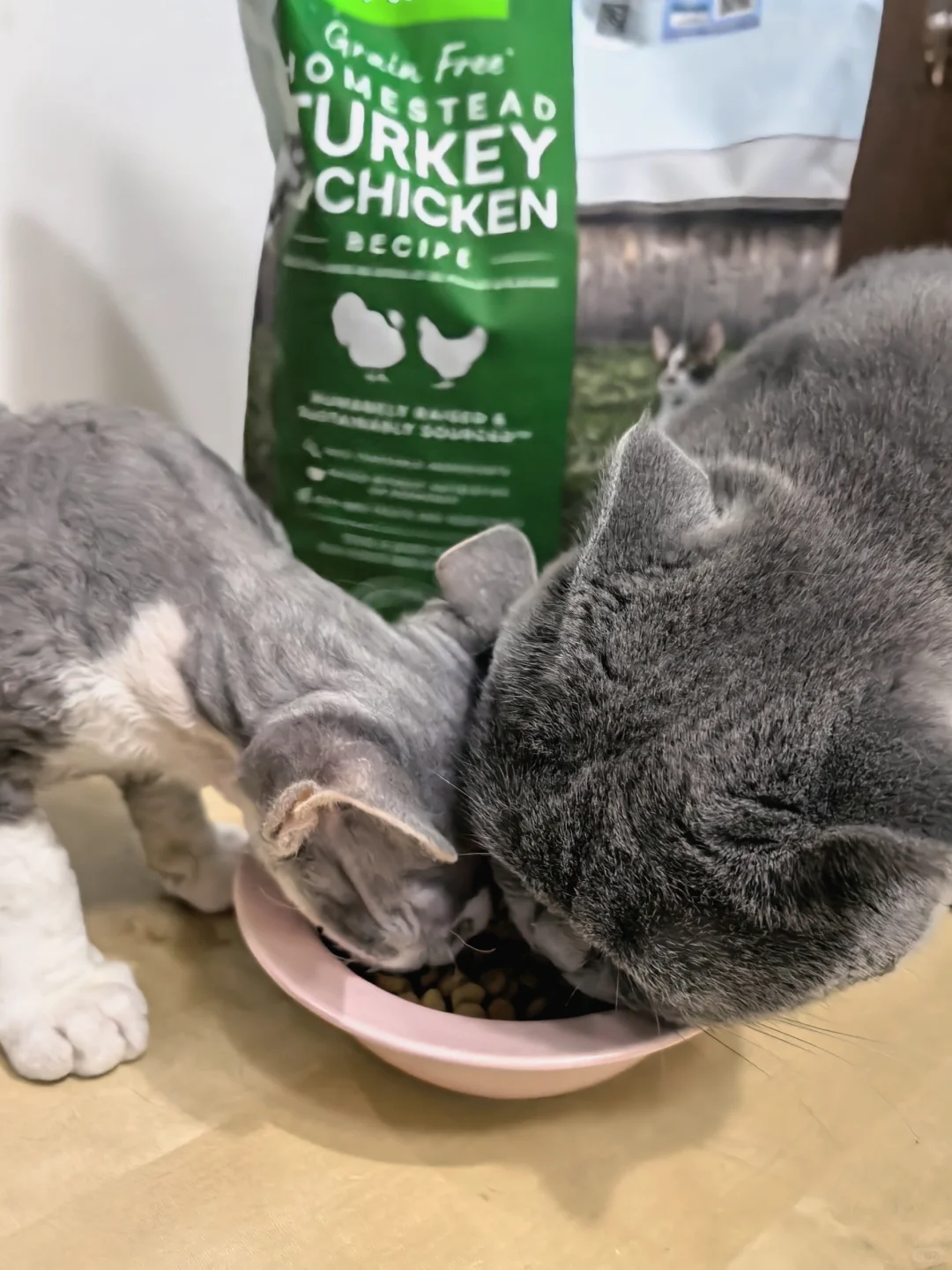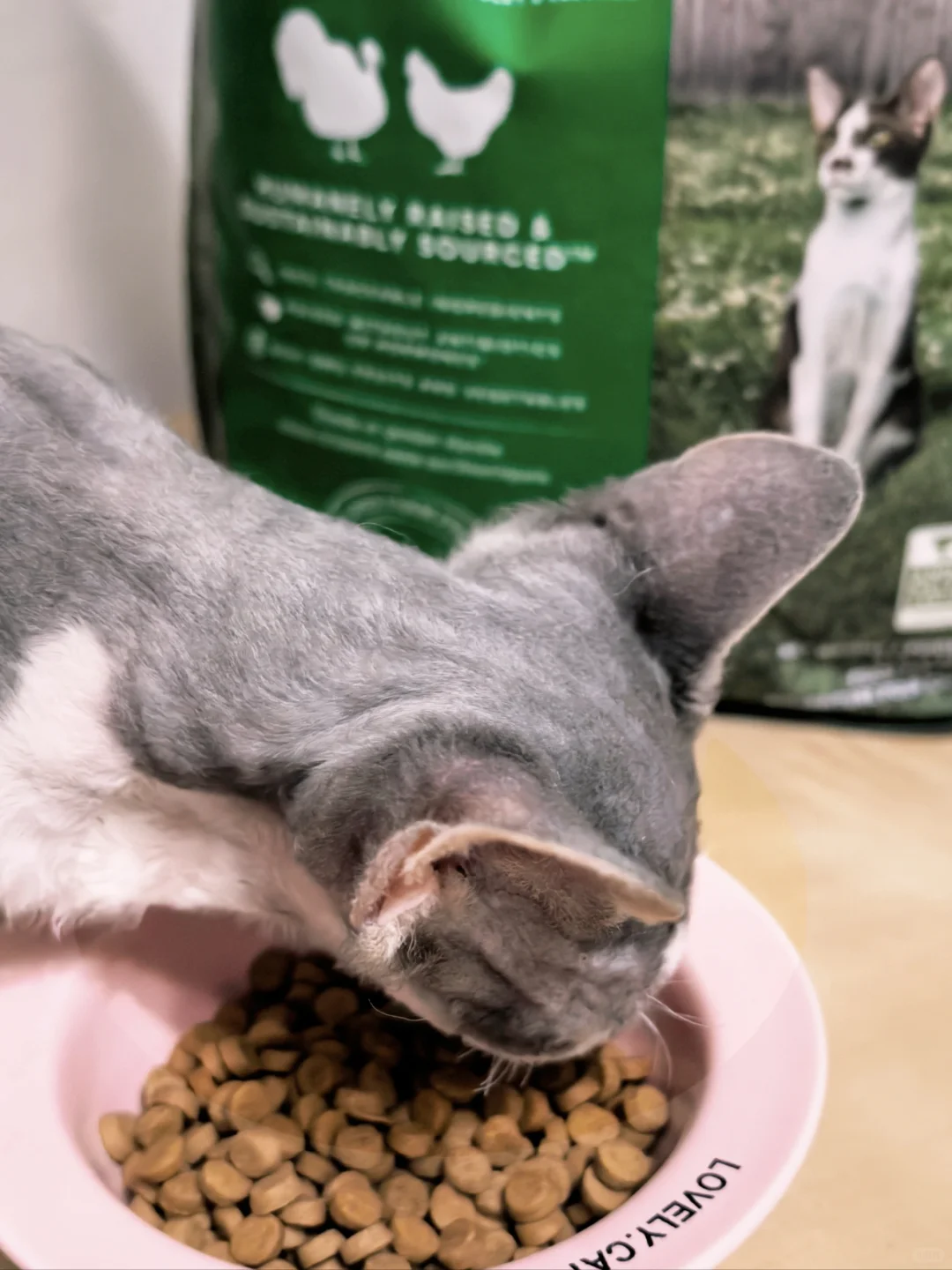 德文很脆皮,好容易因为过敏长痘或者爆发皮肤病,所以火鸡肉会是一个不错的选择,而且这款猫粮主打一个超级碗的感觉,蔓越莓、蒲公英叶的添加,也让猫粮功能性更全面。如果看中G.A.P.4级认证这种东西的话,直接可以闭眼入,稳的! 看着它们吃得香,自己也开心不是?