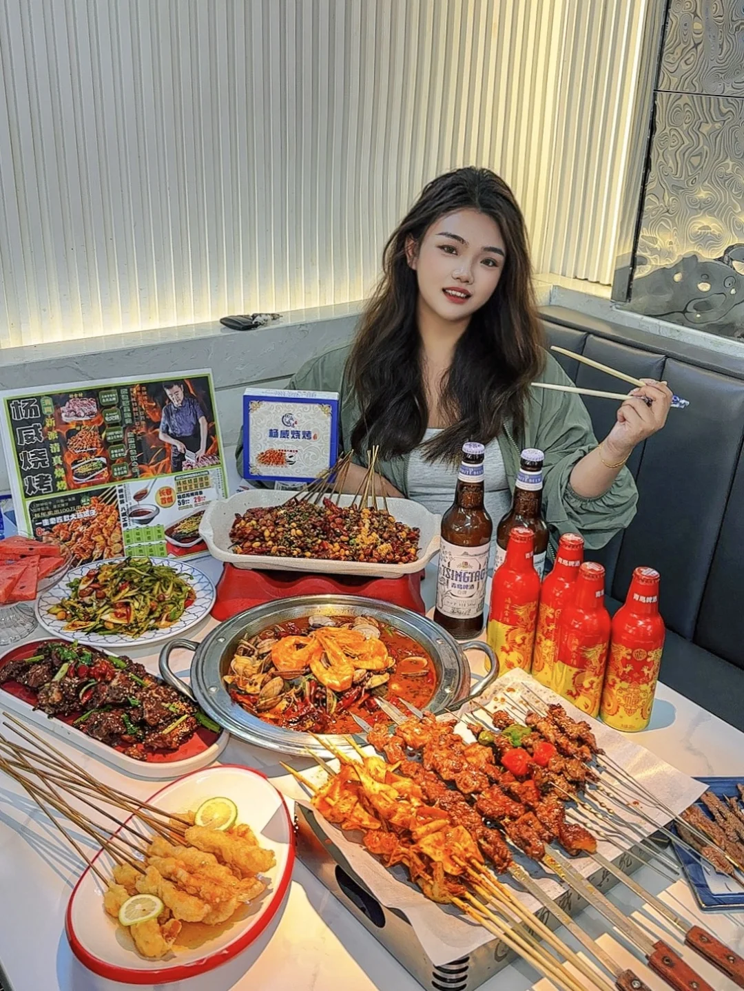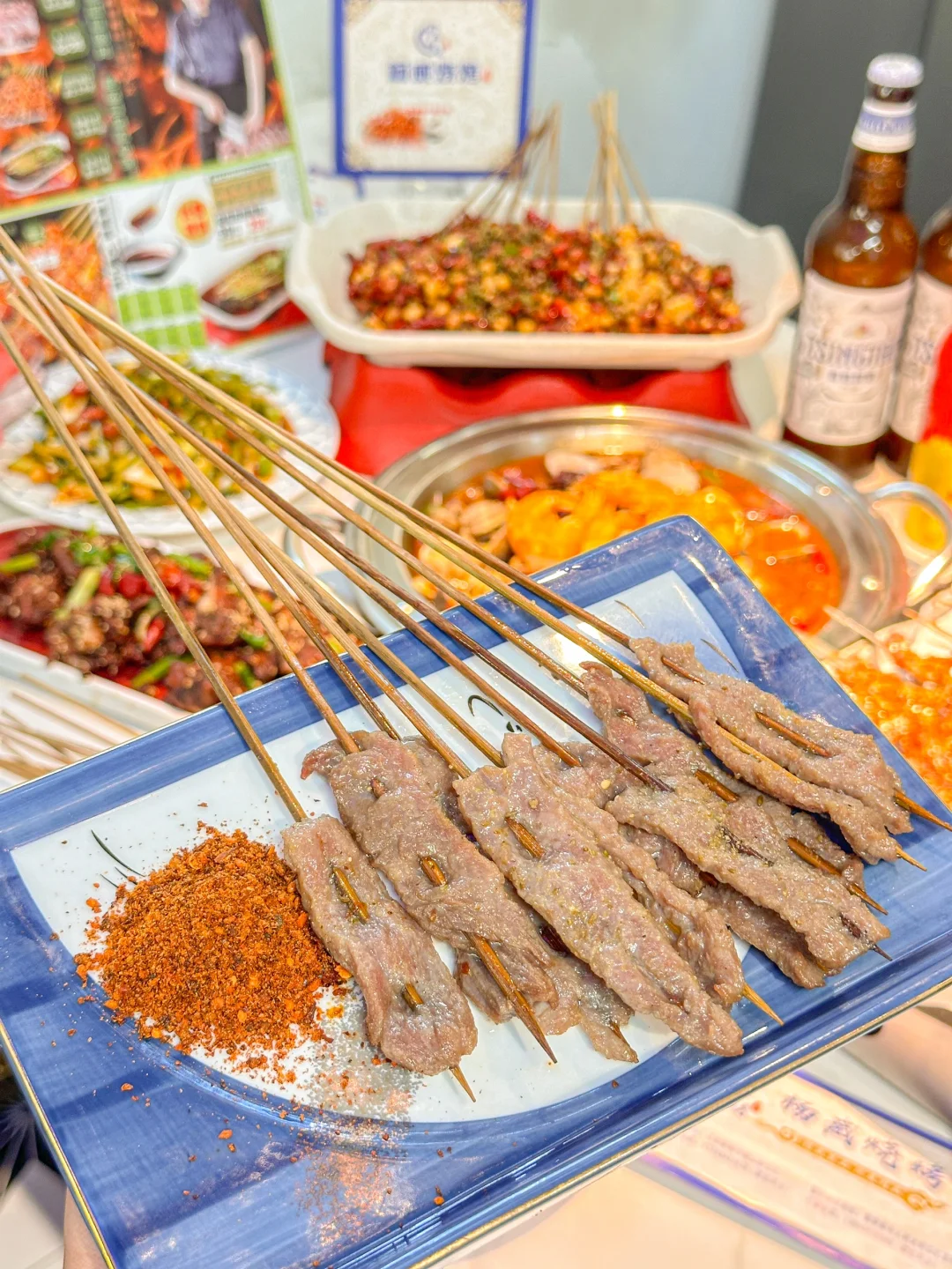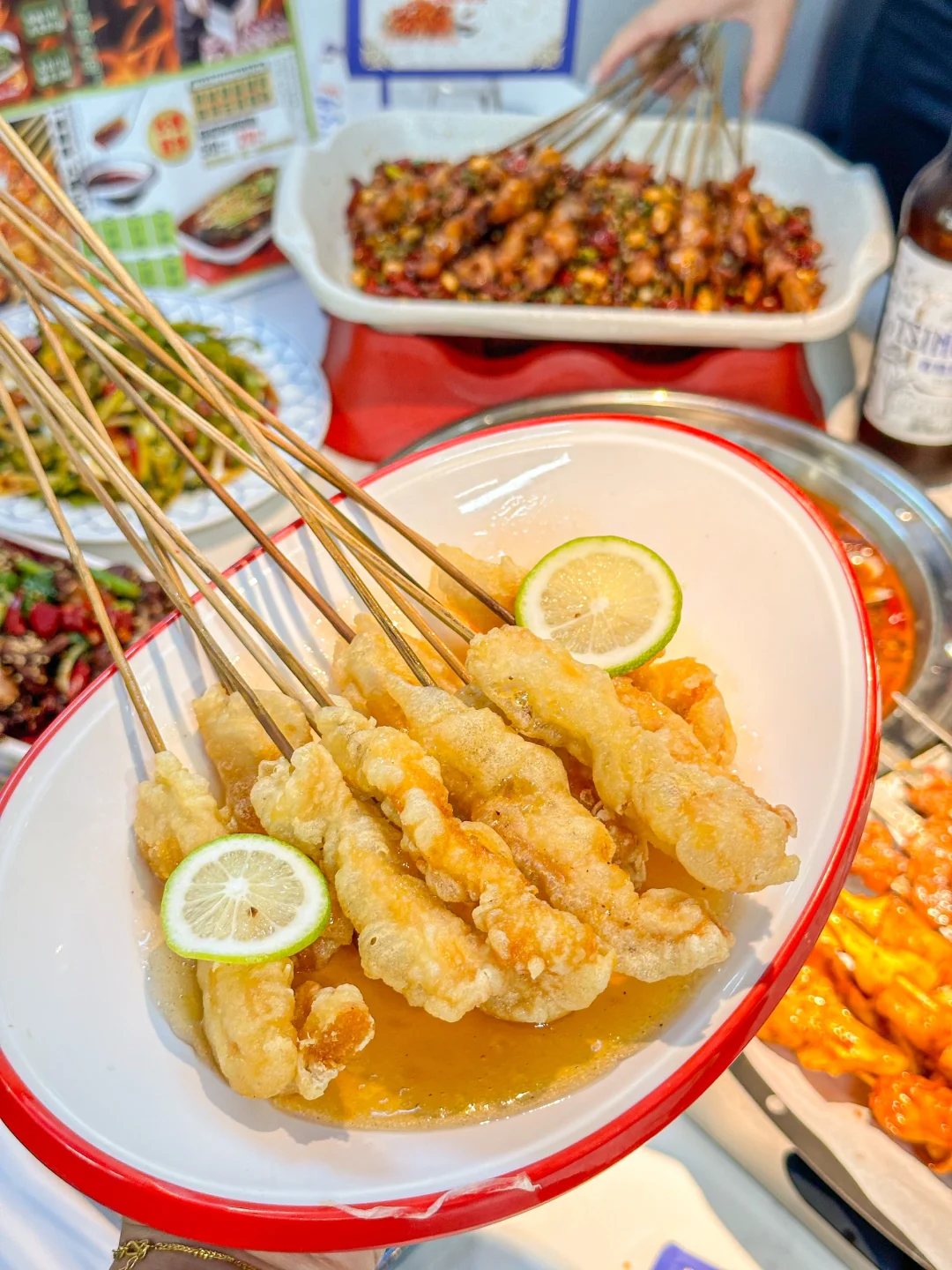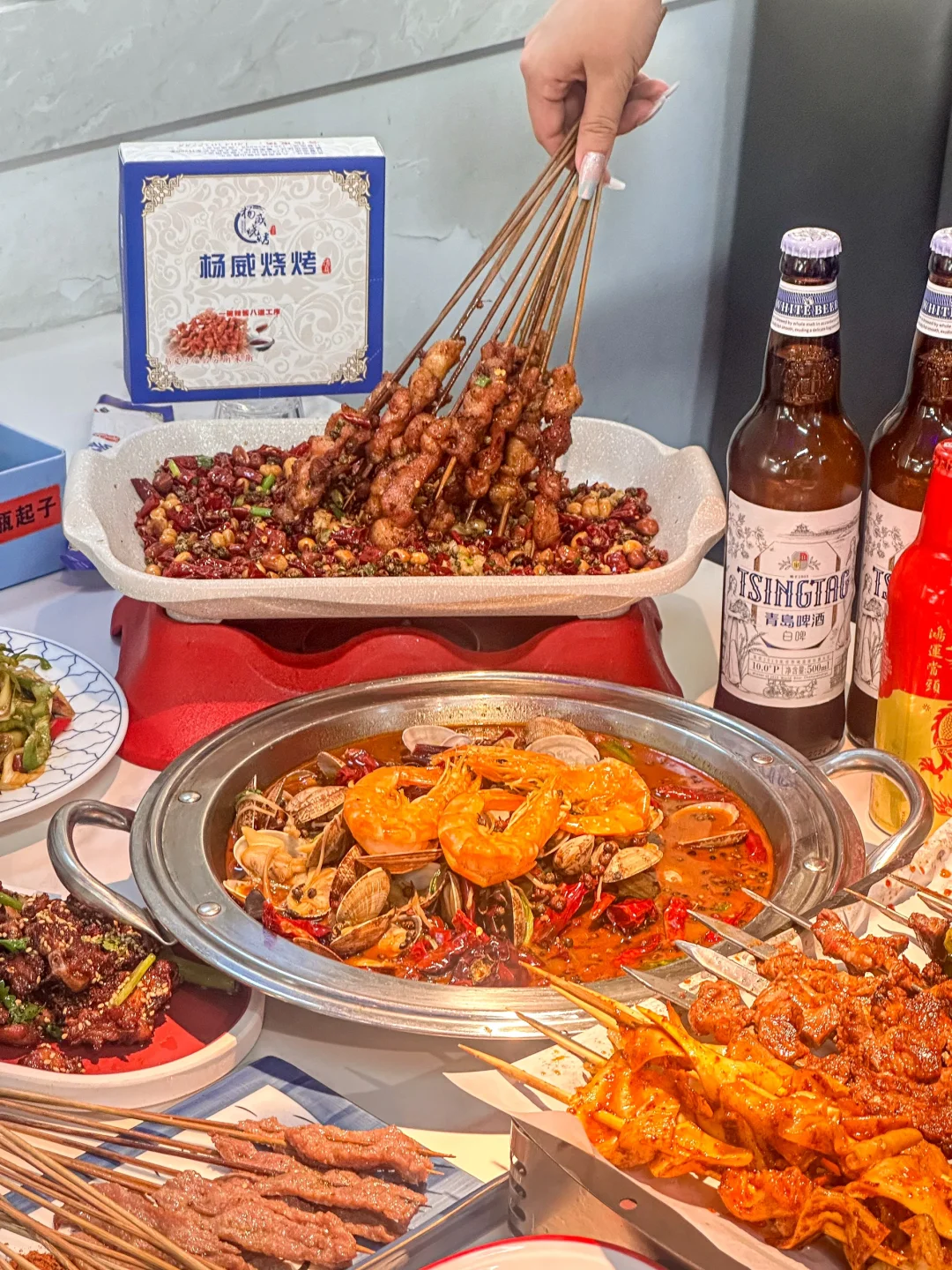 又到了跟好朋友坐在路边吃烧烤的季节! 他家的大筋皮子超香 肉串也嘎嘎大 普通女孩子吃几串就饱了哈哈 麻辣凤背串串香和起泡锅包肉 都是在别家都没吃过的味道 再来锅甜麻肥蛤 用料超足 甜麻香辣 真的太太太过瘾啦~